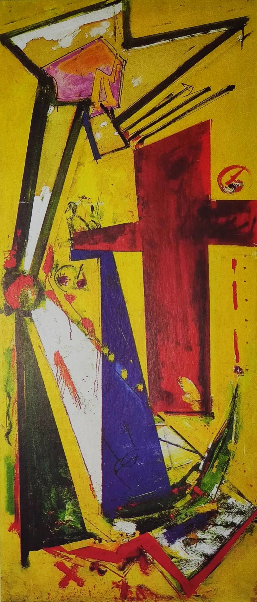 图3 汉斯·霍夫曼,《马赛克十字架草稿》,1950年,布面油画,213.4厘米×92.7厘米,西班牙巴塞罗那现代主义艺术博物馆藏