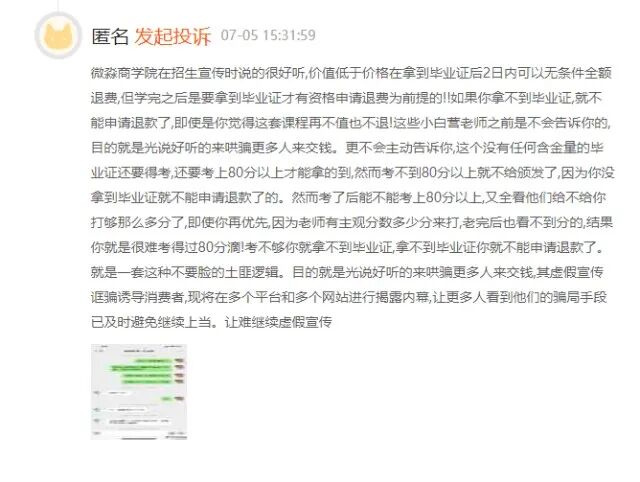 【特别关注】消费者投诉微淼商学院:虚假宣传、诱导消费、威胁用户