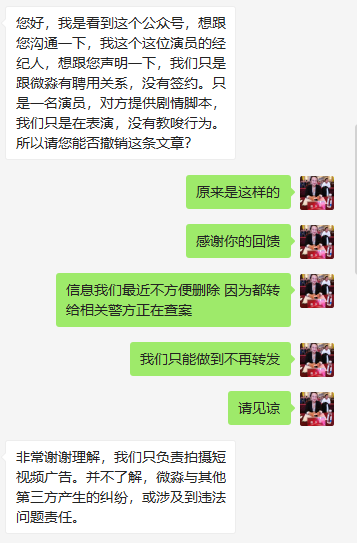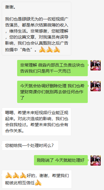 【特别关注】和微淼、伴财短视频广告男主经纪人联络达成共识 对有欺骗消费者且违法的行为广告甲方将共同举报、曝光、痛斥并配合调查