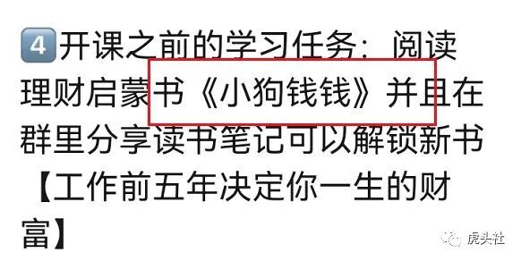 然后布置课后任务,说在明天正式上课前,给大家发了电子书《小狗钱钱》,让大家学习并分享自己的学习笔记发到群里,为正式开课讲解做准备。