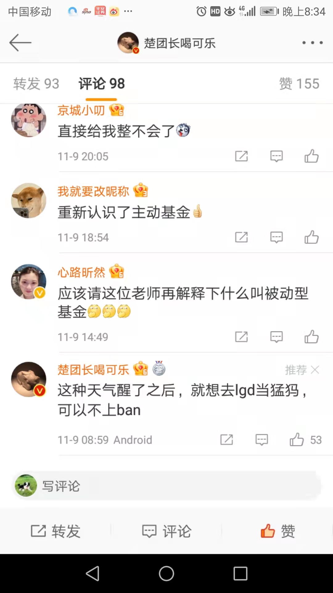 被骗学员联系微博上最早曝光主动基金的博主: