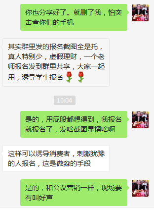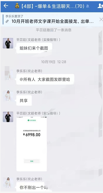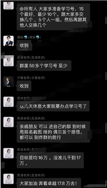 首先先把重要的两个信息公开,我们感谢勇敢正直的老师在可能会被公司查到甚至报复的情况义无反顾的发给我们这个重要信息,第一是内部群领导安排要求员工准备各类人设的小号(在微淼好听点称为学习号),第二就是李乐乐组织开户,会议中先宣誓喊口号(内部洗脑),再逐一发言,其中惊喜的发现了网红木子老师的讲话和宣誓!微淼发了声明的目的是为了再让大家啪啪打脸?
