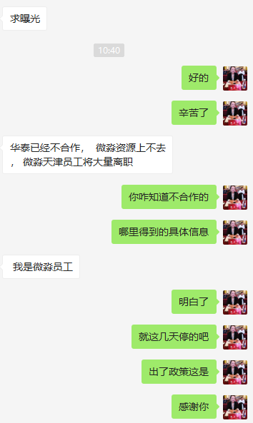 以下为微淼在职员工提供的信息告知我们前两日政策落地,目前微淼已经和华泰证券不再合作: