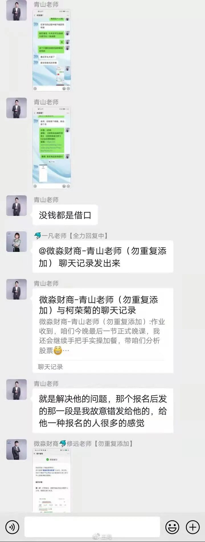 【特别关注】网友后台留言通过公众号的推广误入了一个财商课小白营群 差点被收割!