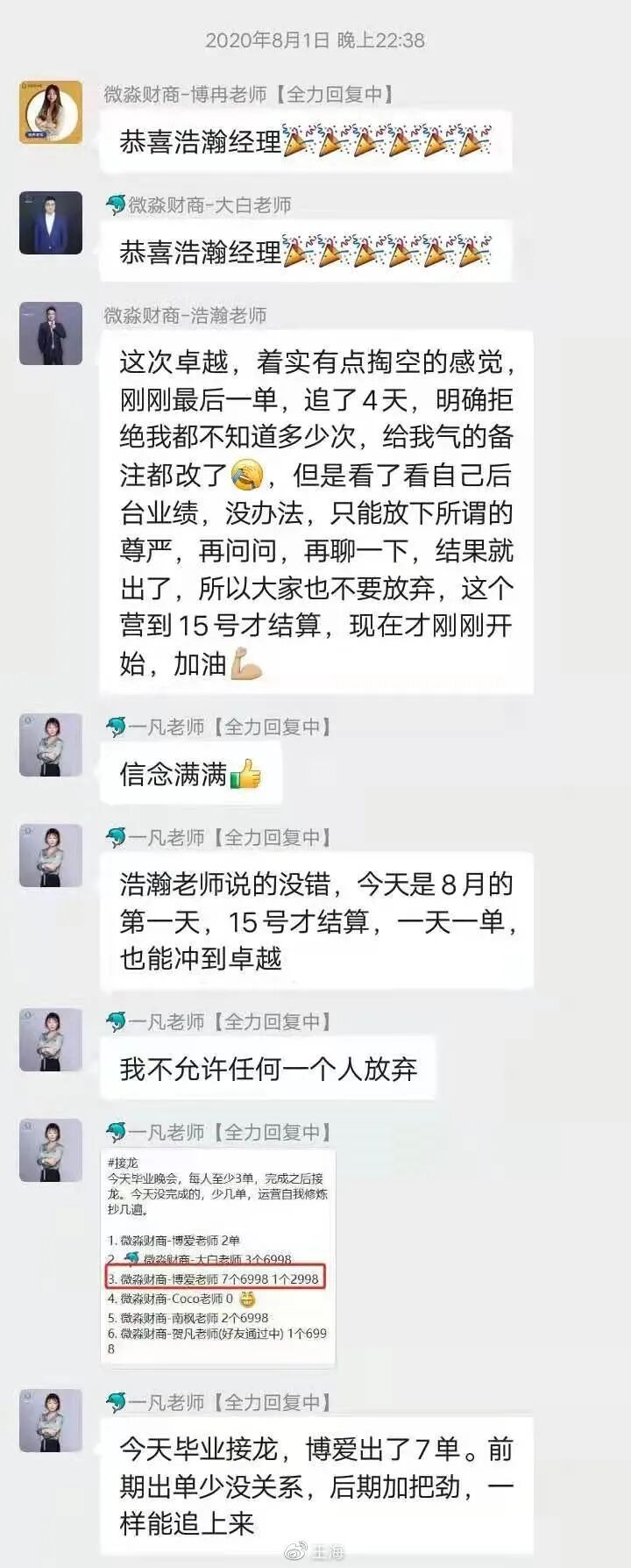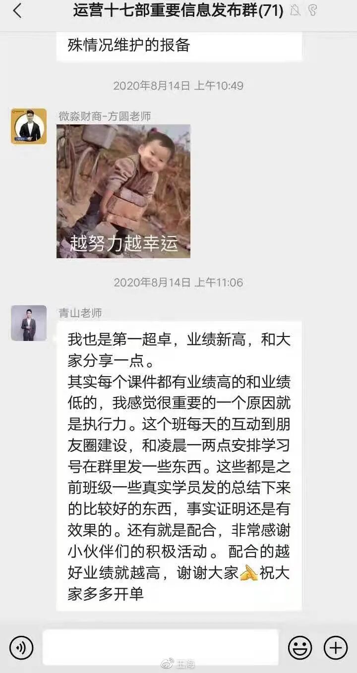 以下为已经离职的微淼老师分享的微淼商学院某运营群中的图片!