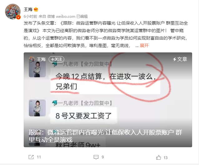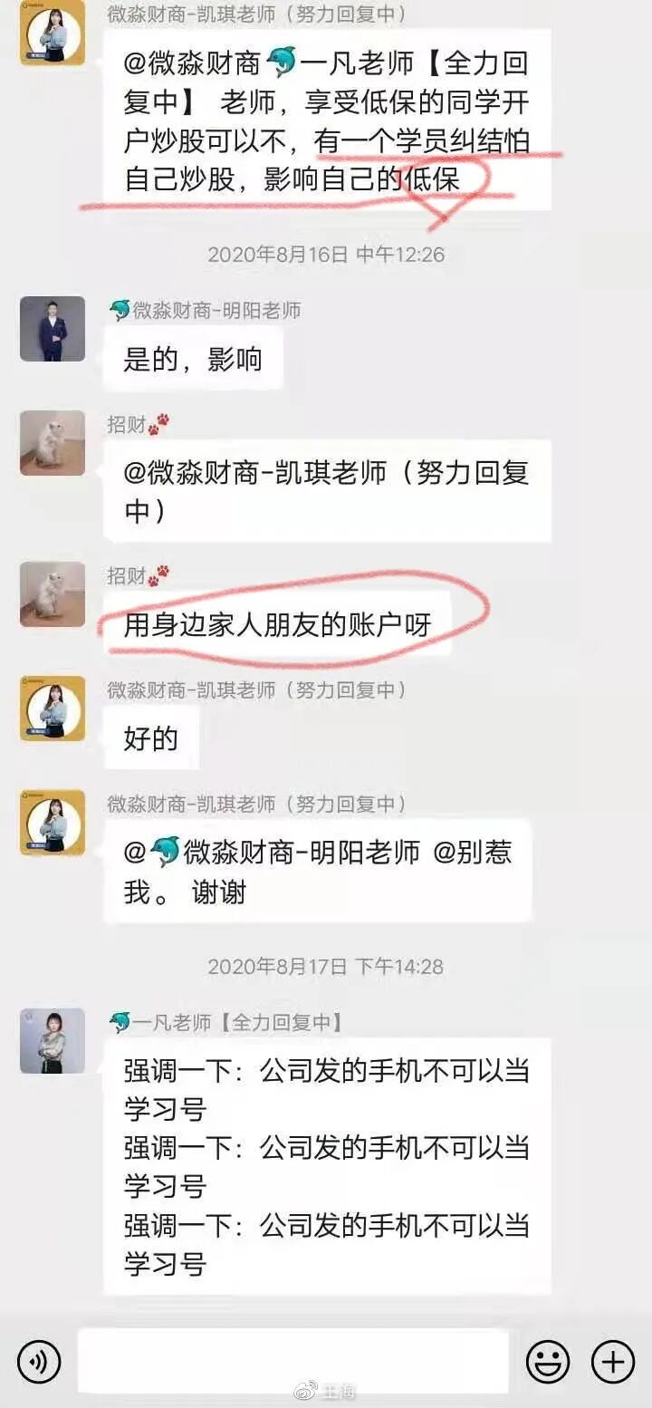 跟踪:微淼运营群内容曝光 让低保收入人开股票账户 群里互动全是演戏