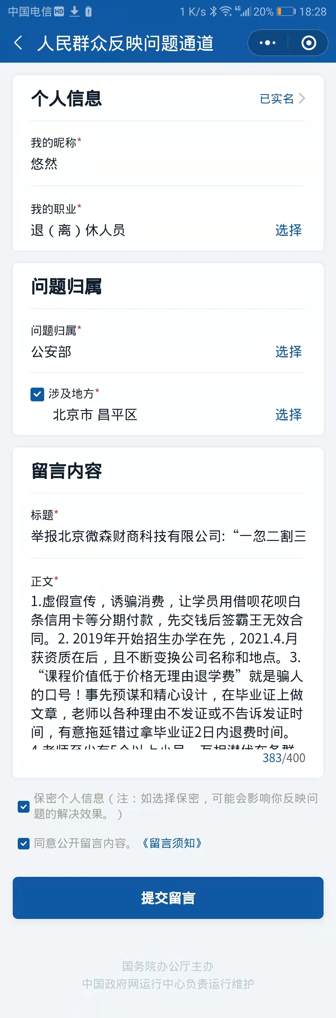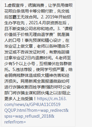 在此希望全国被骗的学员积极向国家网信办举报百度目前仍在给微淼进行推广,从未中断,希望国家网信办要求百度暂停给微淼的推广!同时目前短信营销有大量的微淼的群发信息,也希望查一下百姓的名单从哪里来,哪家短信营销推广机构给微淼在进行推广!