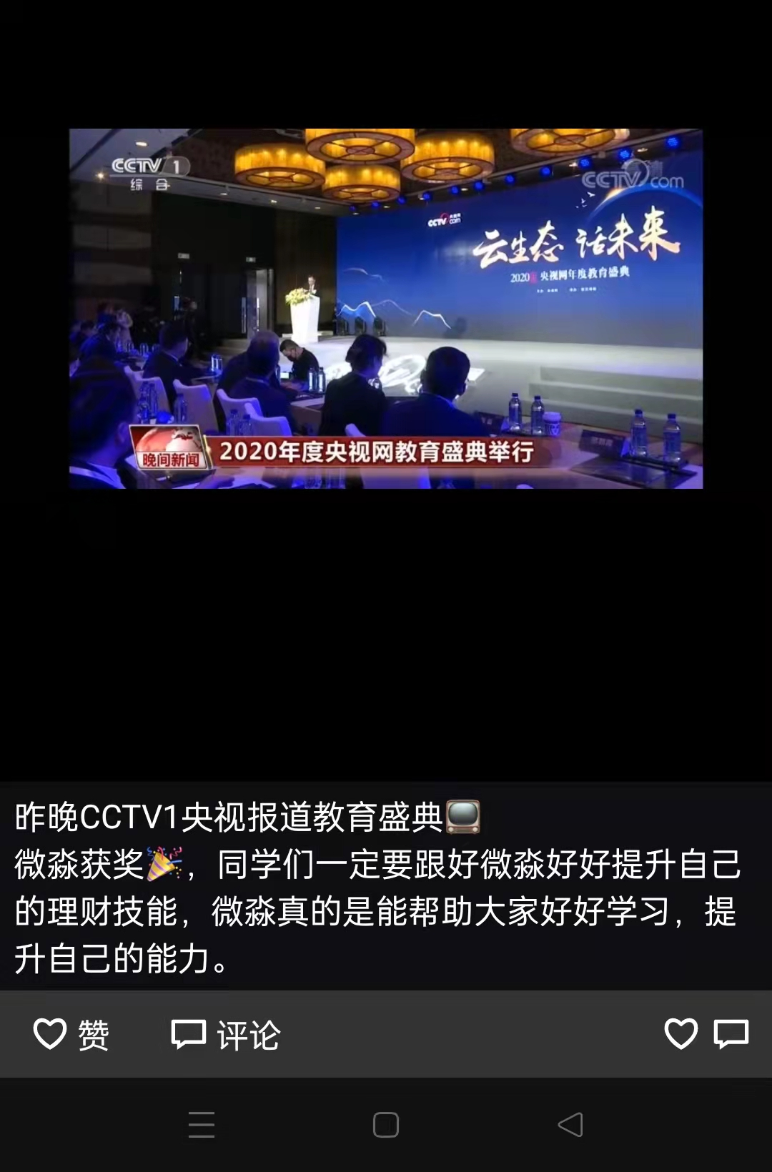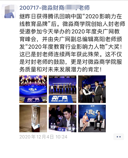 微淼作秀是出了名的。不管是在建党100周年的内部洗脑作秀还是郑州地铁水灾的作秀无不大肆宣传,同时和第一财经会议一场作秀,还和机构发一个财商的报告白皮书啊等等。此前获奖更得无数啊。和政府签约啊,和中央财大的合作呀。地铁广告啊,教育啥人物大奖啊!