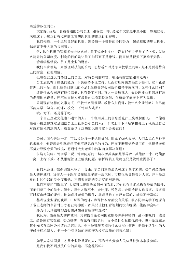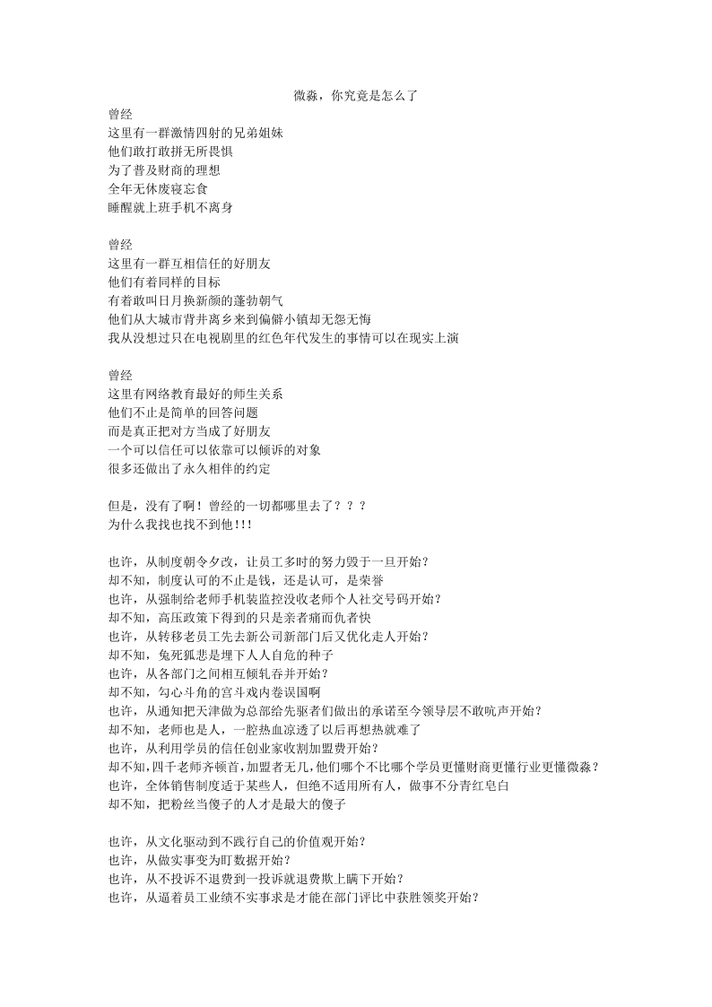 【重磅推荐】微淼在职老师全面起底微淼财商机构内部大量情况和细节!@公安部@天津宁河区政府@微淼员工@微淼学员 请关注并希望思考!