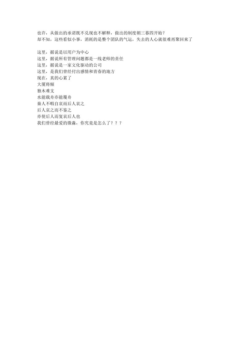 也许,从制度朝令夕改,让员工多时的努力毁于一旦开始?