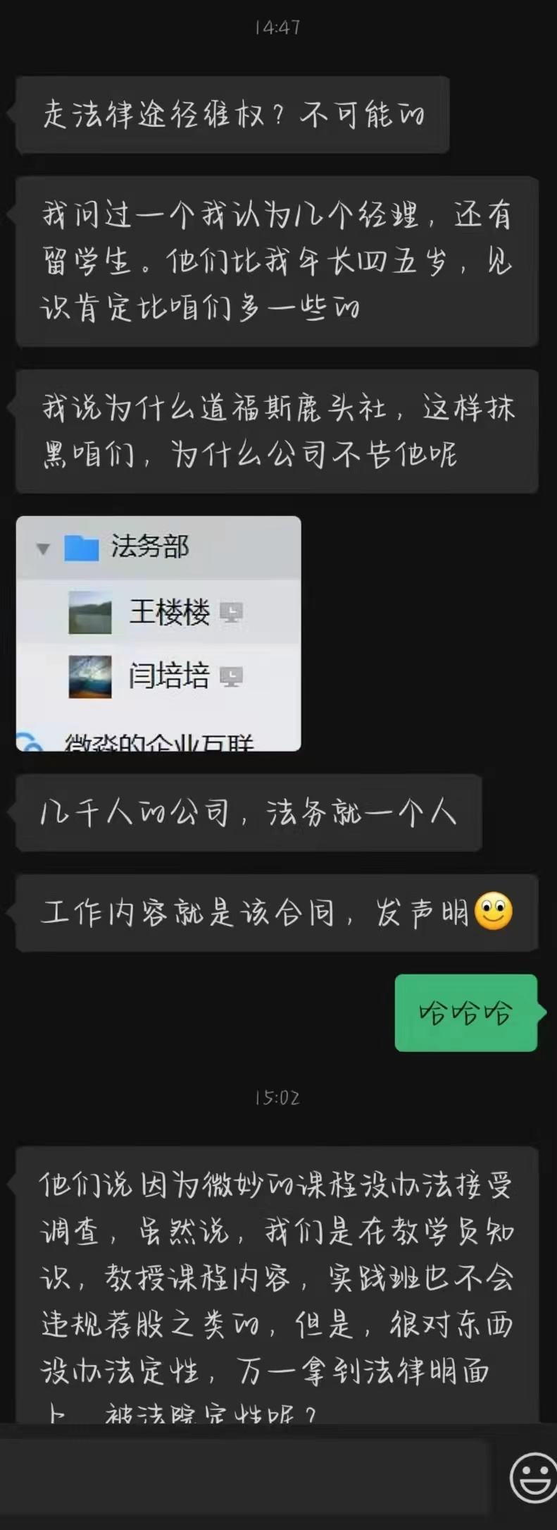 【证据公开】微淼离职老师曝光重磅信息——从公司小号到学习号的演变等全部发展过程、员工举报其他员工去缅甸做过诈骗被带走事情