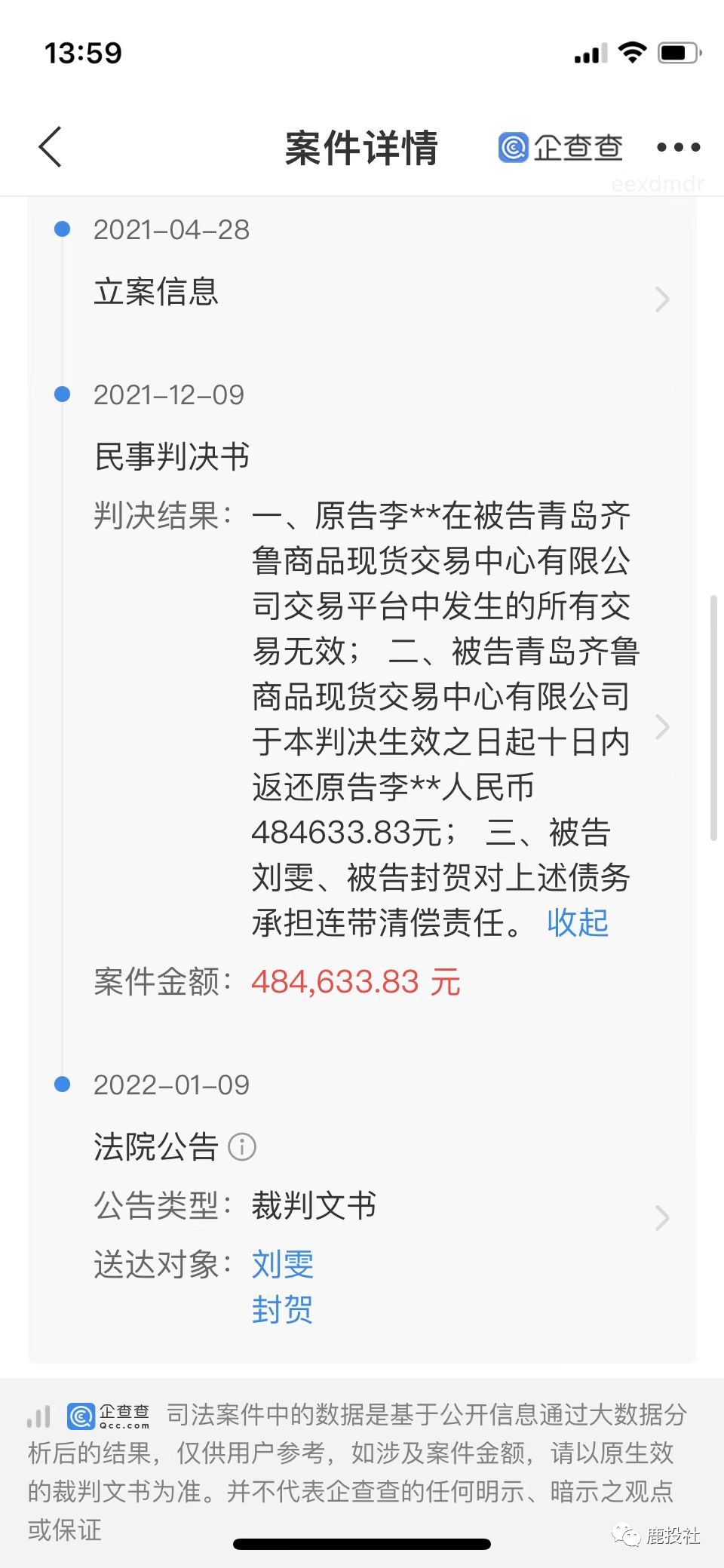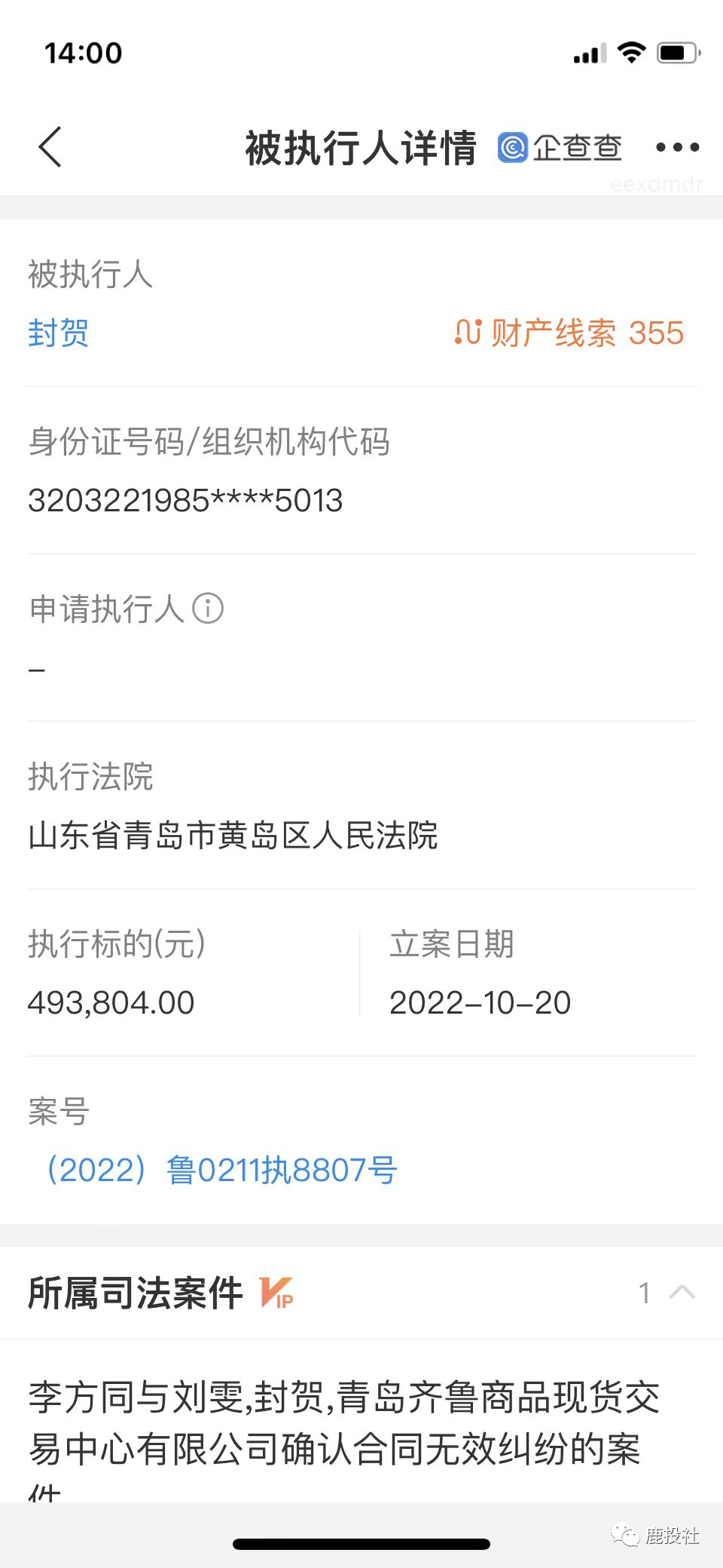 微淼一直包装自己的老板封贺是一个青年才俊!而此前从事非法金融的过程发家早就被员工扒光底细,最近有一个法院的被执行的公告,或许封贺还不赔款出去,恐成为失信人员!