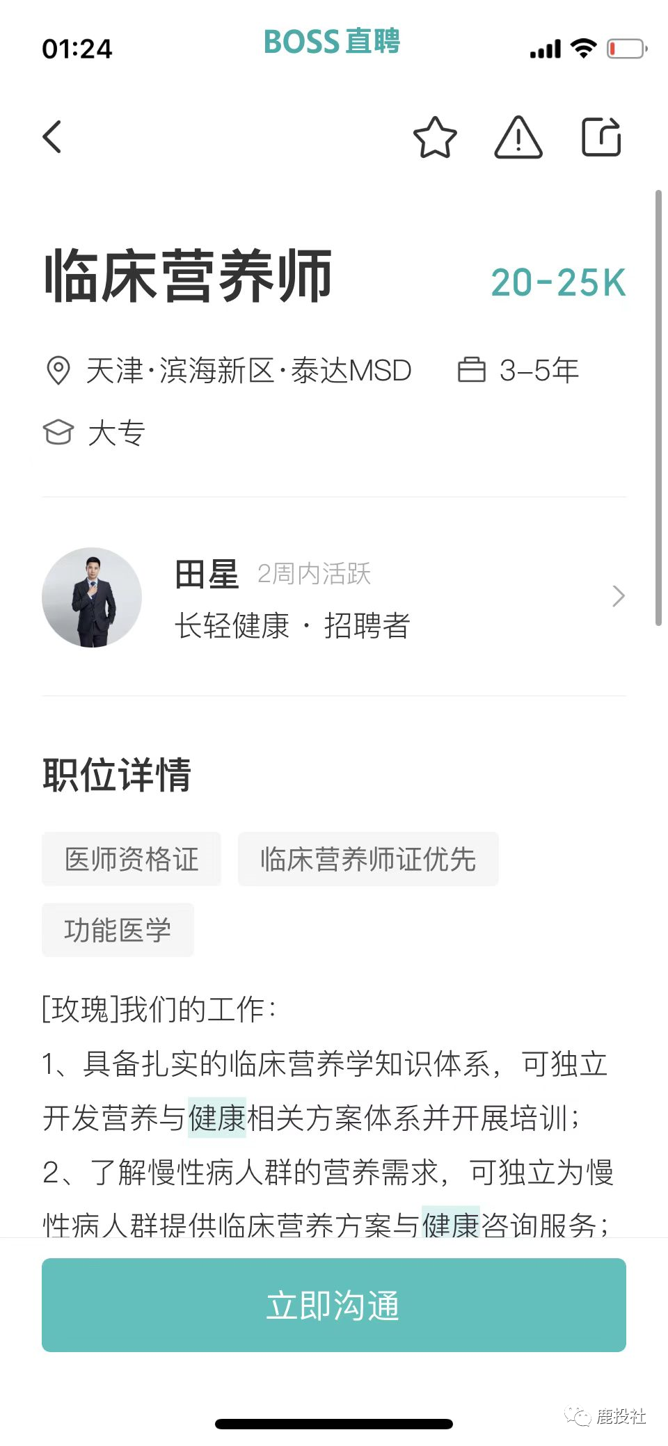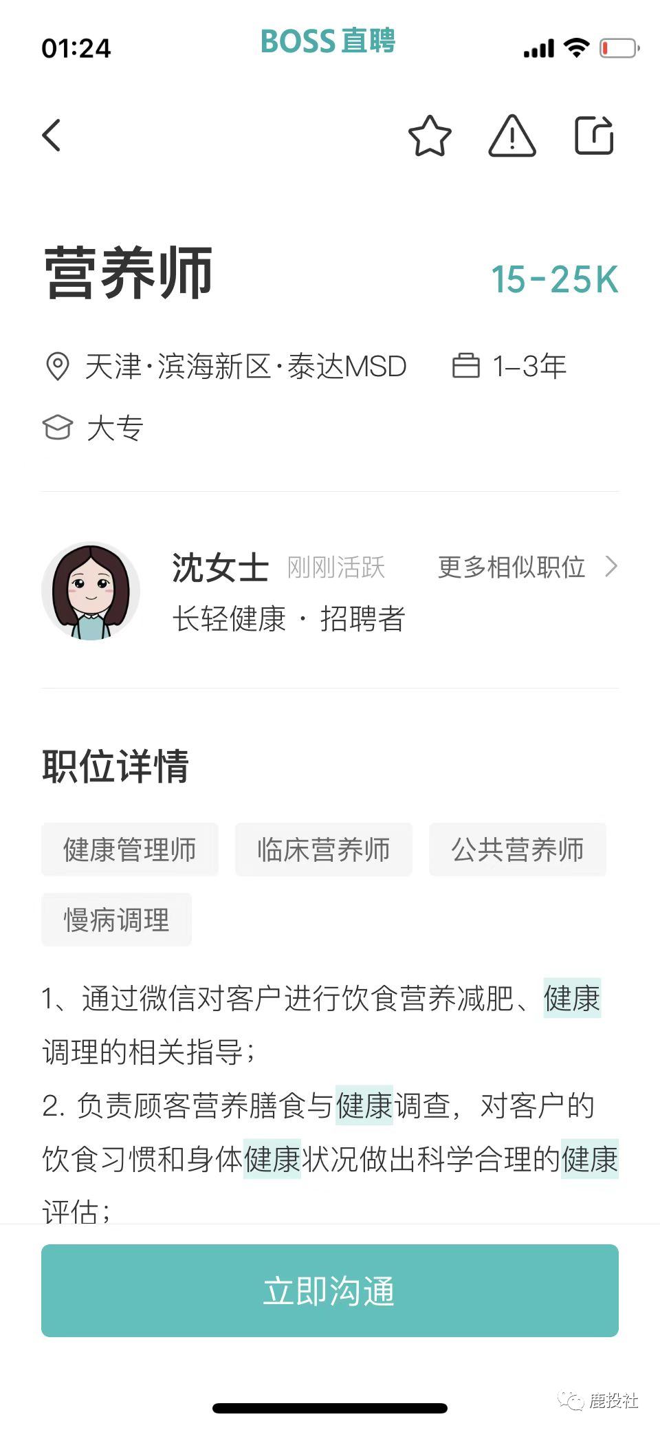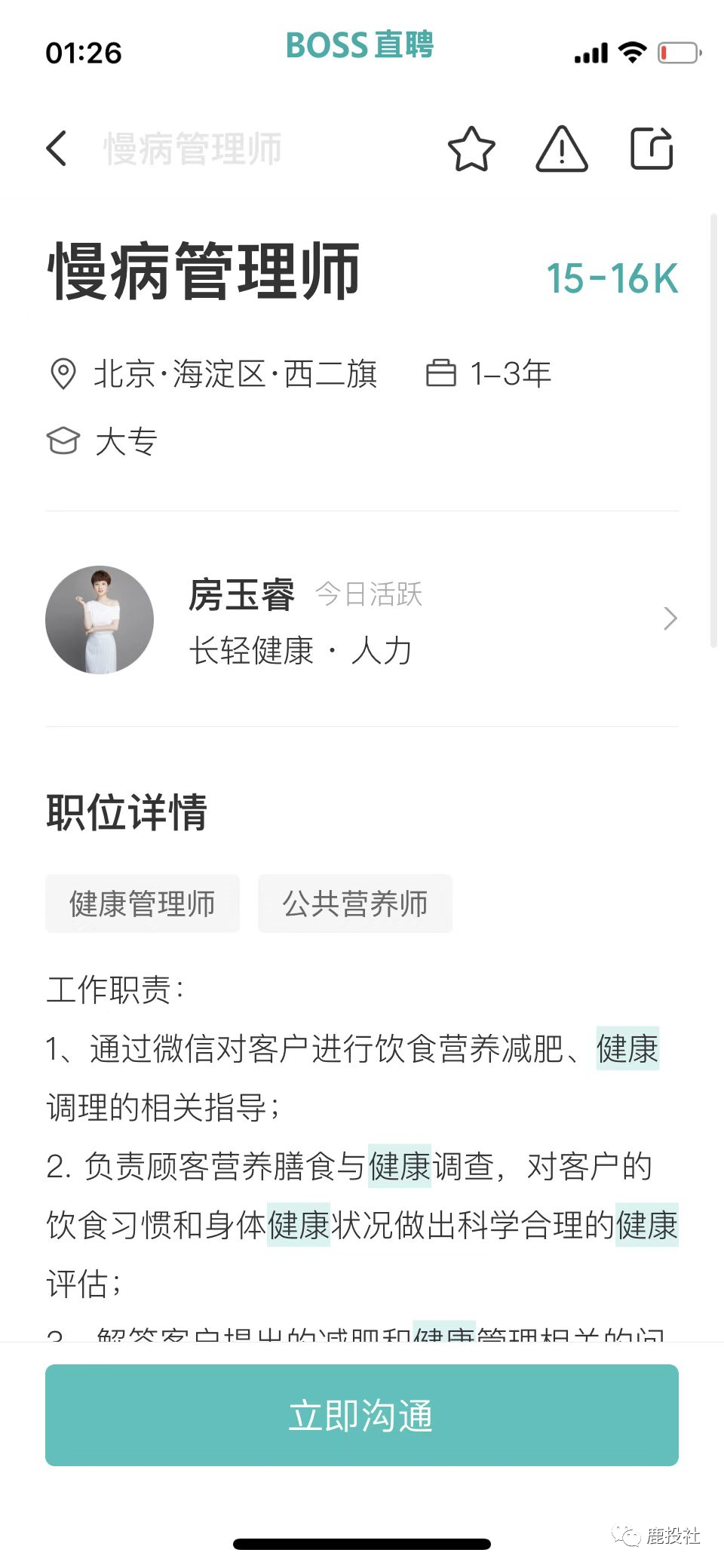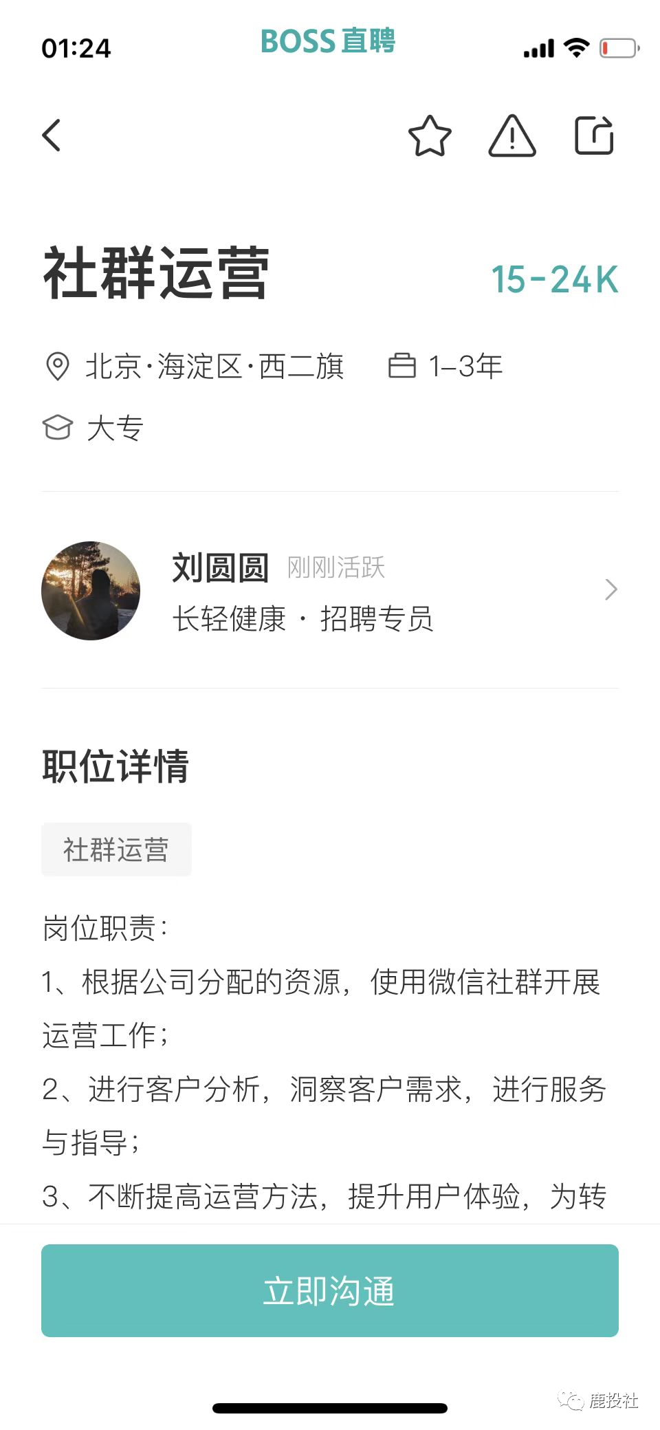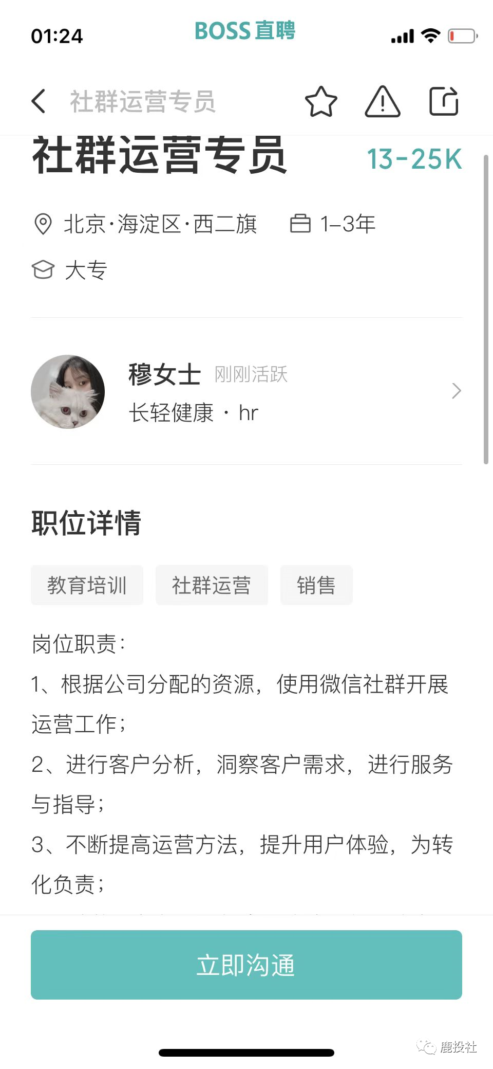 我们通过BOSS直聘的APP看到微淼体系下的长轻健康(原长轻瘦身)(公司名字用北京科原,以前用天津健康美丽公司,换来换去,我们都很迷糊,估计和天津那边闹翻了,天津也不给他们税收优惠了,又用北京的这个壳)项目除了象征性的招聘几个营养师以外,大量招聘销售岗(其中包括社群运营、社群运营专员、社群运营督导、销售专员)都提到一点有房地产和保险行业经验优先!