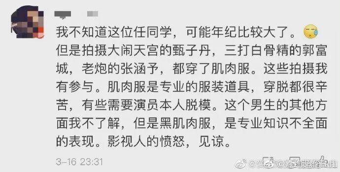 任嘉伦这事儿一闹,就有专业人士表示没必要黑肌肉衣本身,它是专业的服装道具,运用得当是合理的。
