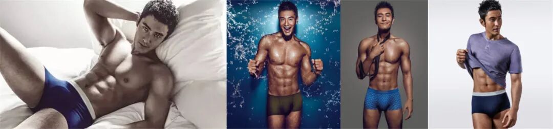 黄晓明的腹肌就多次被人怀疑是P的。这组图大家应该不陌生,黄晓明拍摄的内裤广告,全身的毛发加上古铜色的肌肤被网友集体吐槽P成了C罗。修图师傅也很不走心,第一张是6块腹肌,第二第三张怎么就成了8块。