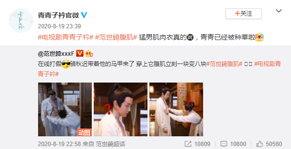 假肌肉搞这么明显,官方还敢以此为噱头宣传的,《青青子衿》确实是头一个。演员本人和整个制作组都被骂得不轻。