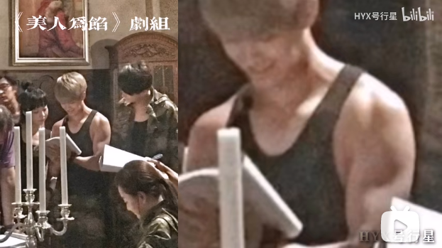 2016年拍《美人为馅》时能看到任嘉伦练得挺猛,手臂的肌肉很发达。