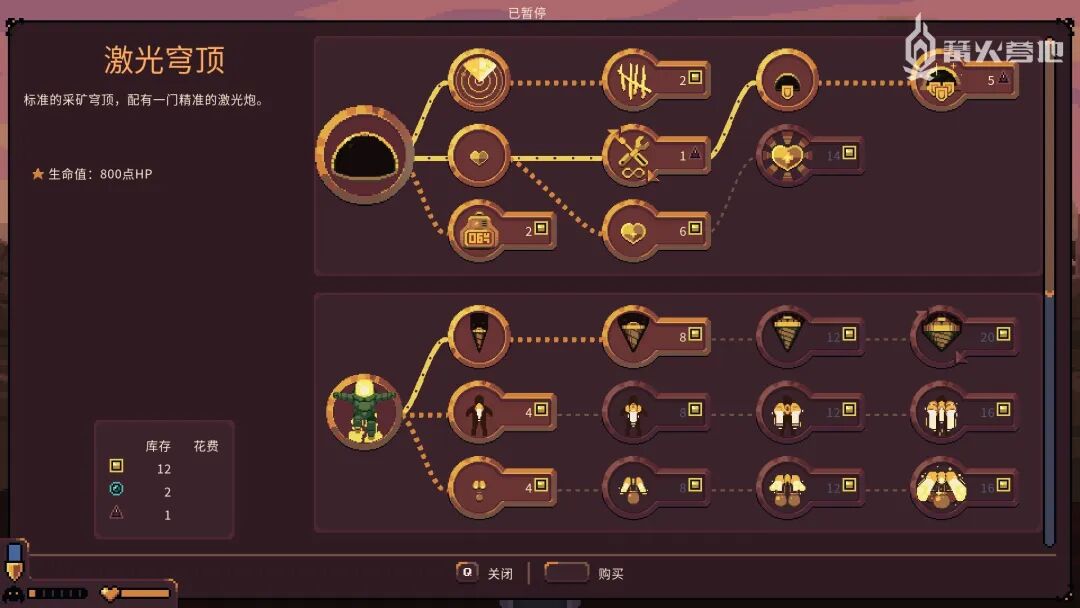 所有与穹顶与主角性能有关的升级,都以消耗若干资源为代价。