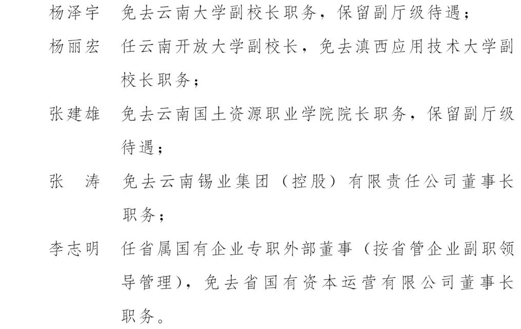 省科技厅、省民族宗教委、省公安厅、省国资委、省机关事务局、省滇中引水建管局,云南大学、云南开放大学、滇西应用技术大学、云南国土资源职业学院,云南锡业集团(控股)有限责任公司、省国有资本运营有限公司:
