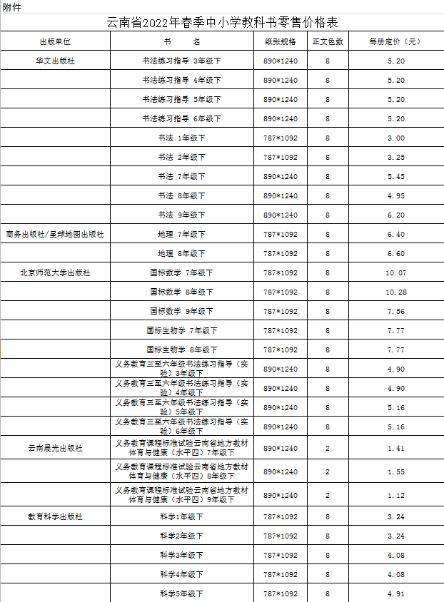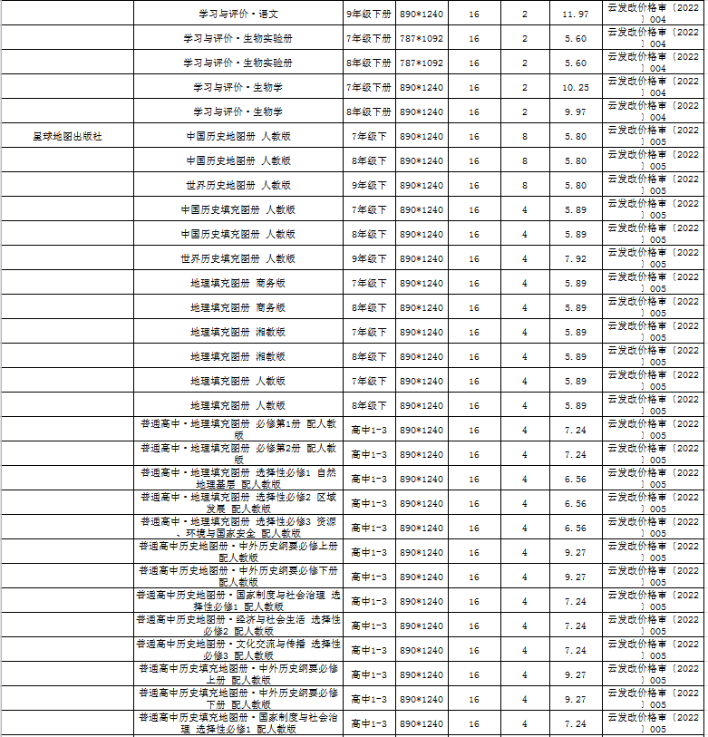 根据《云南省物价局 云南省新闻出版广电局关于进一步加强中小学教材价格管理的通知》(云价价格〔2016〕62号)要求,省发展改革委核定了云南省2022年春季中小学教科书零售价格。现将有关事项通知如下: