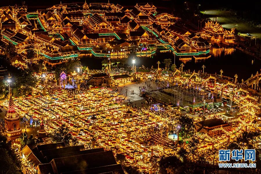 一盏盏承载着美好心愿的水灯点缀了黑夜 告庄西双景景区供图