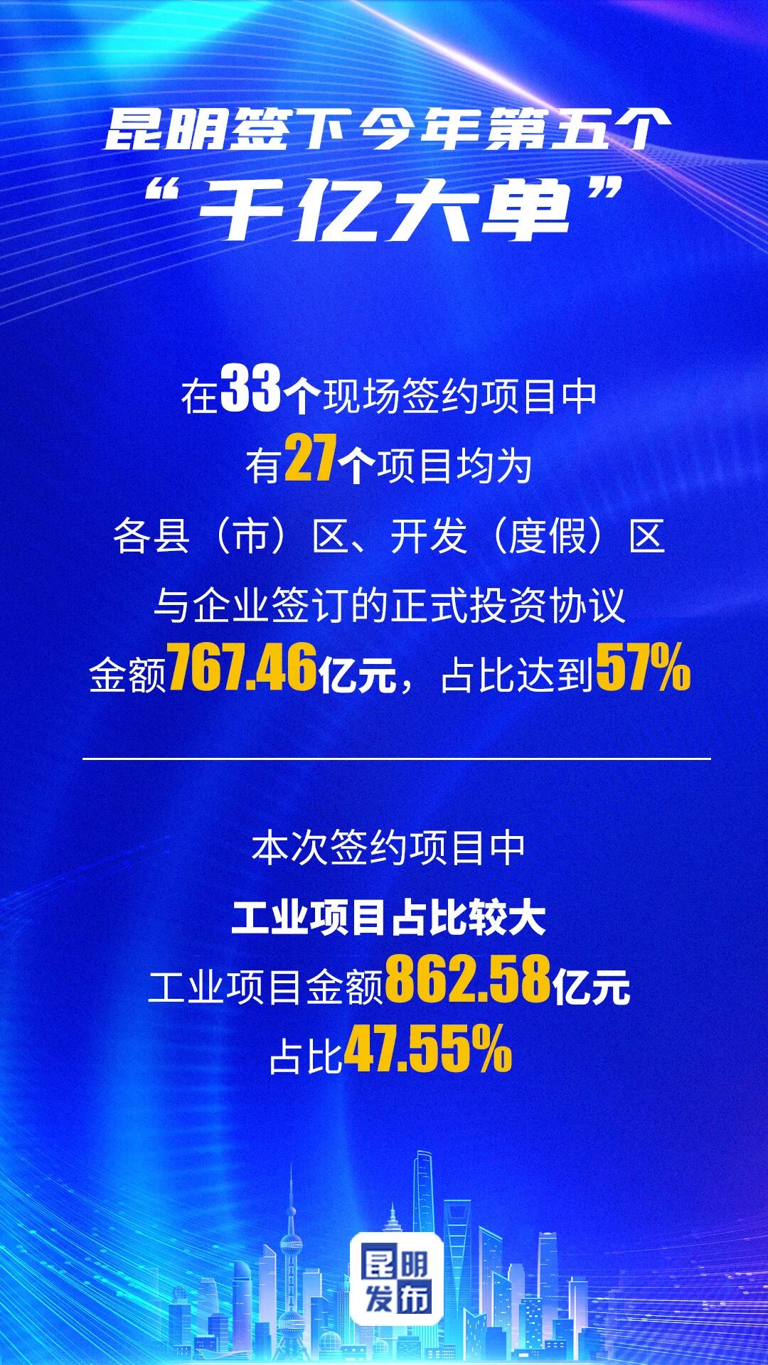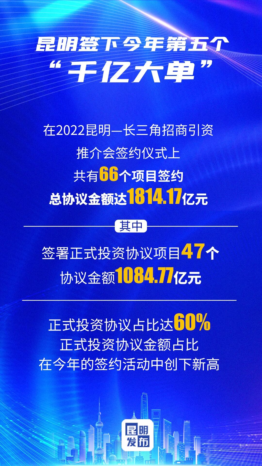 这也是继昆明—成渝招商引资推介会、第五届数字中国建设峰会、昆明—粤港澳大湾区招商引资推介会、第6届中国—南亚博览会暨第26届中国昆明进出口商品交易会之后,昆明在今年签下的第五个“千亿大单”。在2022年即将收官之际,交出了一份合格的答卷。