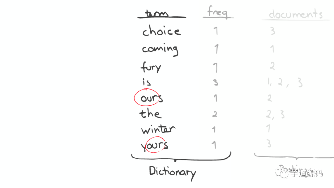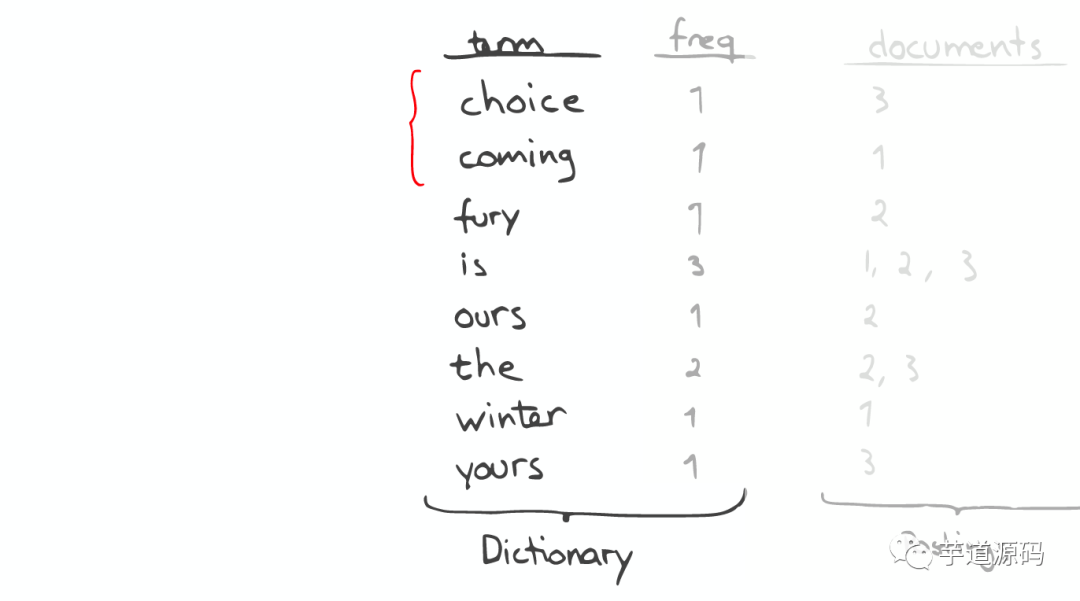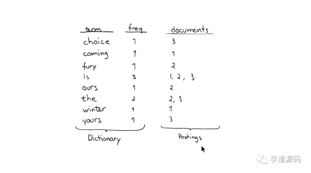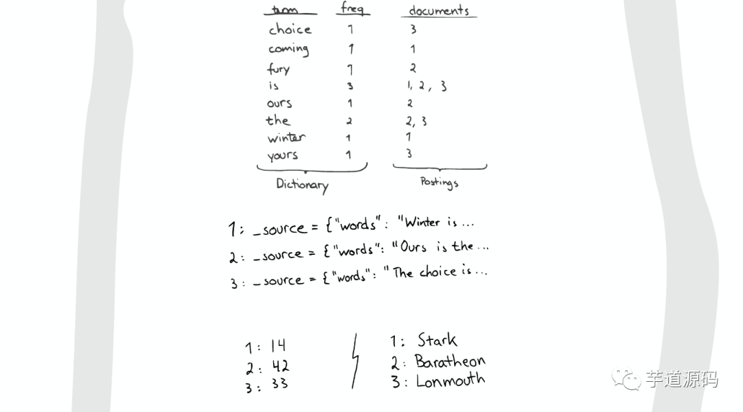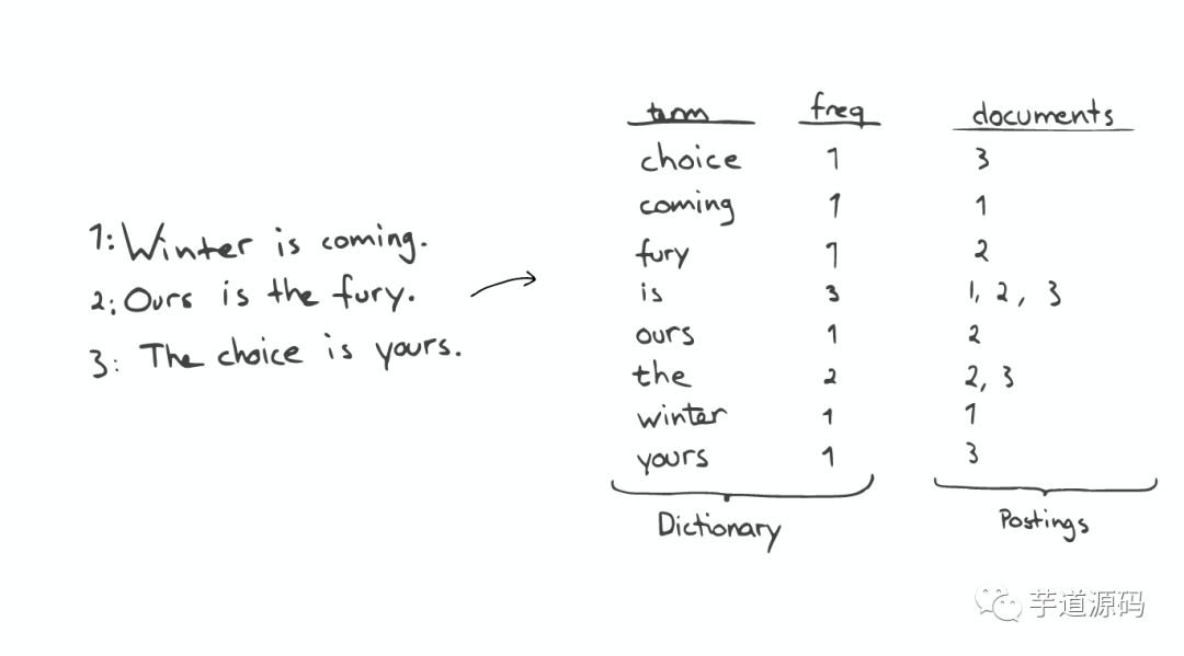 当我们搜索的时候,首先将搜索的内容分解,然后在字典里找到对应Term,从而查找到与搜索相关的文件内容。