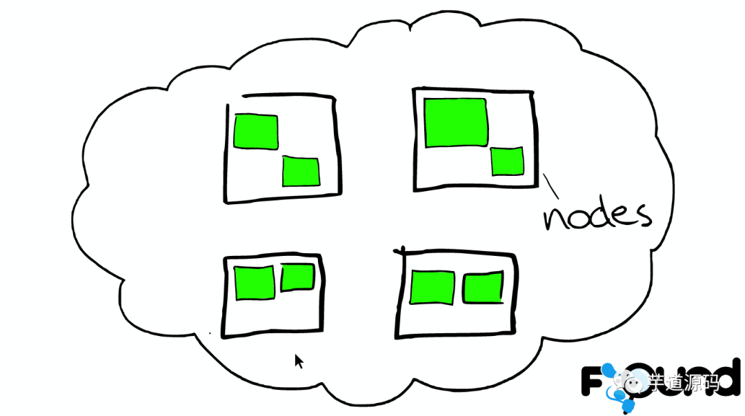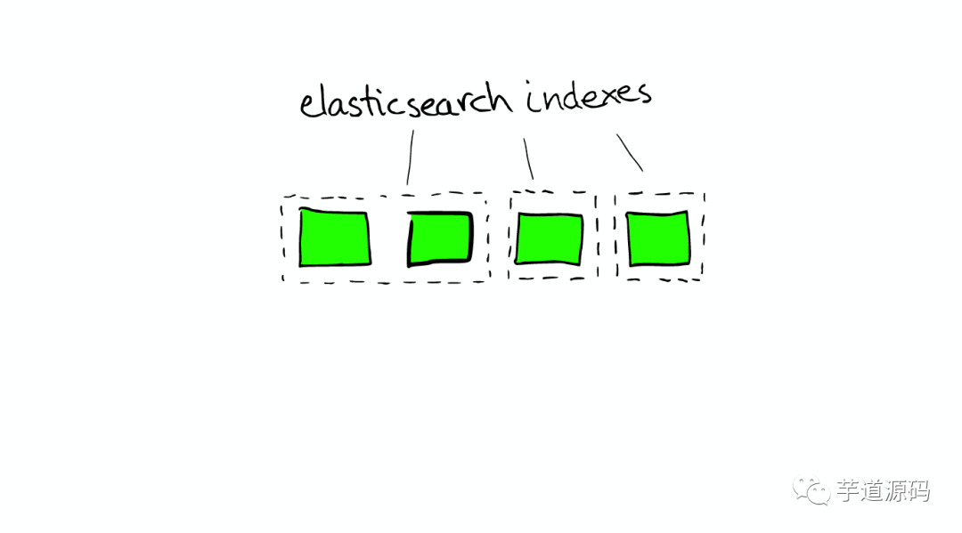 在一个或者多个节点直接,多个绿色小方块组合在一起形成一个ElasticSearch的索引。
