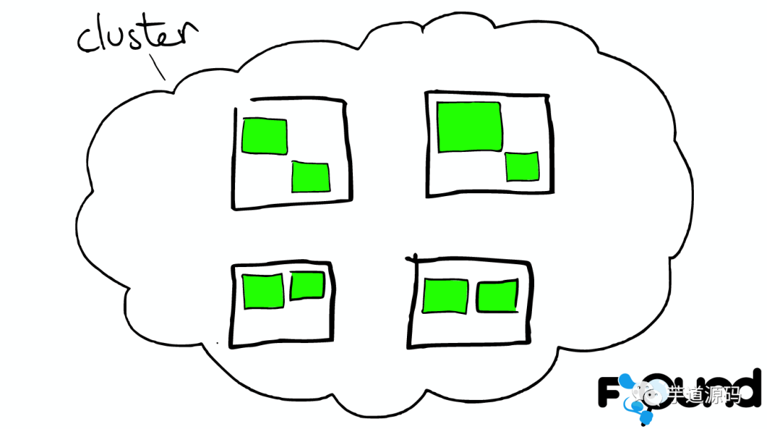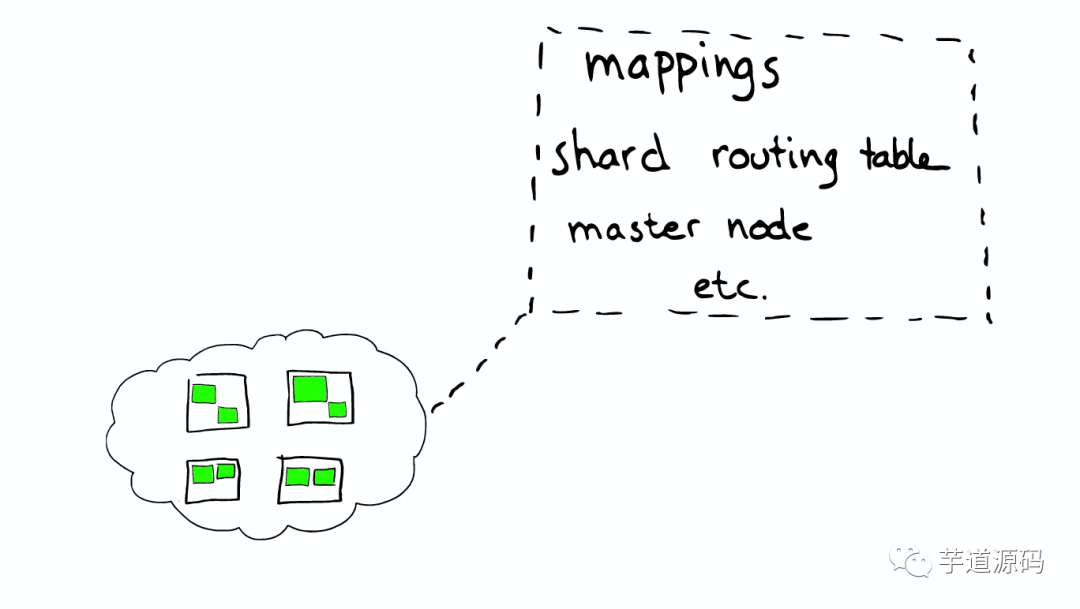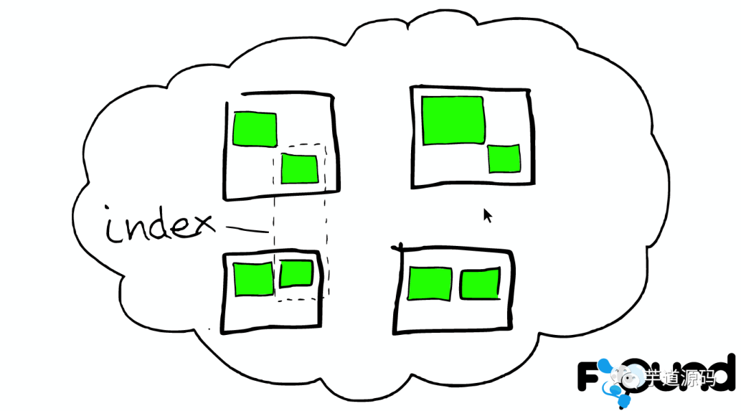 在一个索引下,分布在多个节点里的绿色小方块称为分片——Shard。