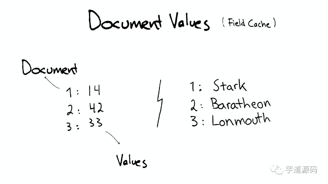 所以,另一种数据结构解决了此种问题:Document Values。这种结构本质上就是一个列式的存储,它高度优化了具有相同类型的数据的存储结构。