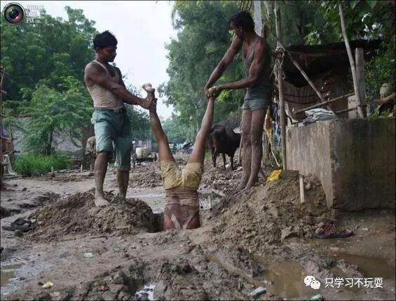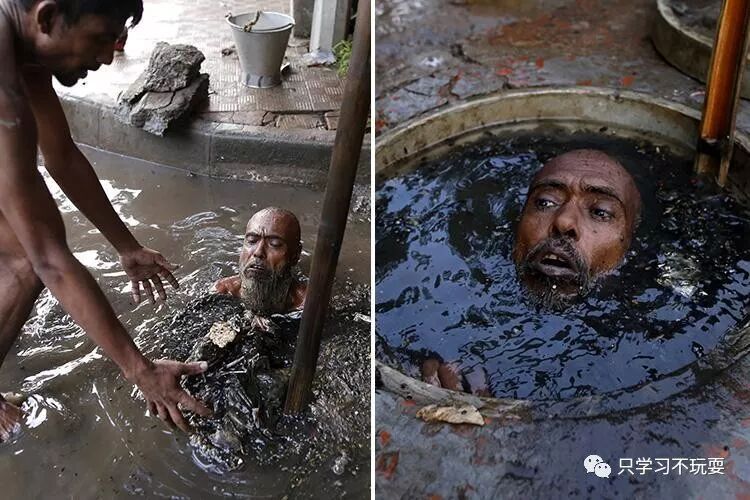 无勘测设备,无保护措施,仅凭一个头盔和身上涂抹的椰子油,清洁工就钻进屎坑展开殊死工作。