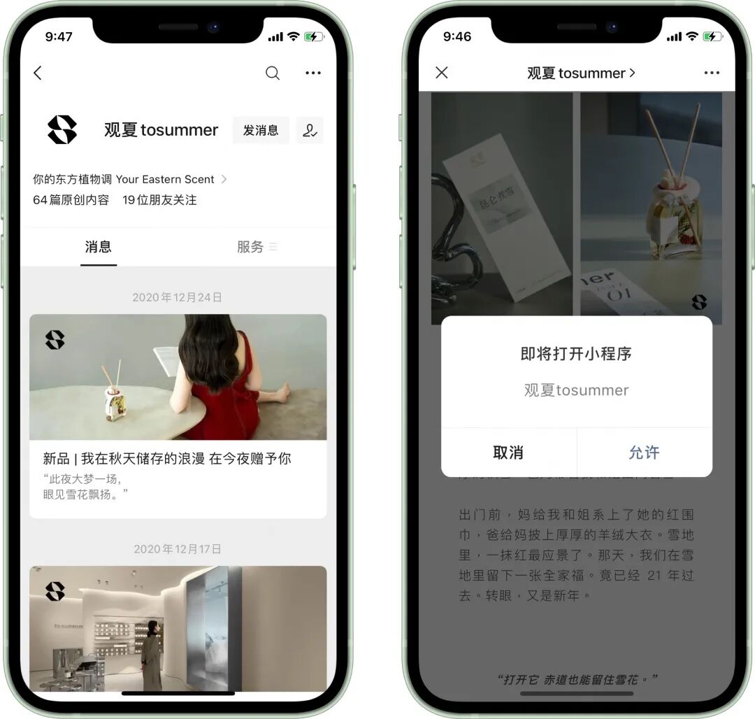● 观夏的微信公众号和小程序(向左滑动查看更多)