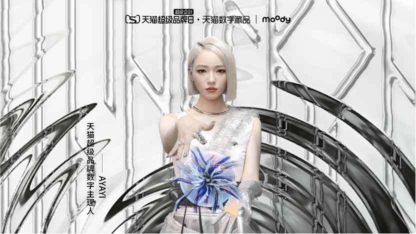 2021 年双十一,美瞳品牌「moody」受邀入驻天猫超级品牌日「元宇宙艺术展」。moody 联合超现实数字人 AYAYI,推出限量产品「星空花语」作为天猫首批数字藏品进入 NFT 数字博物馆。