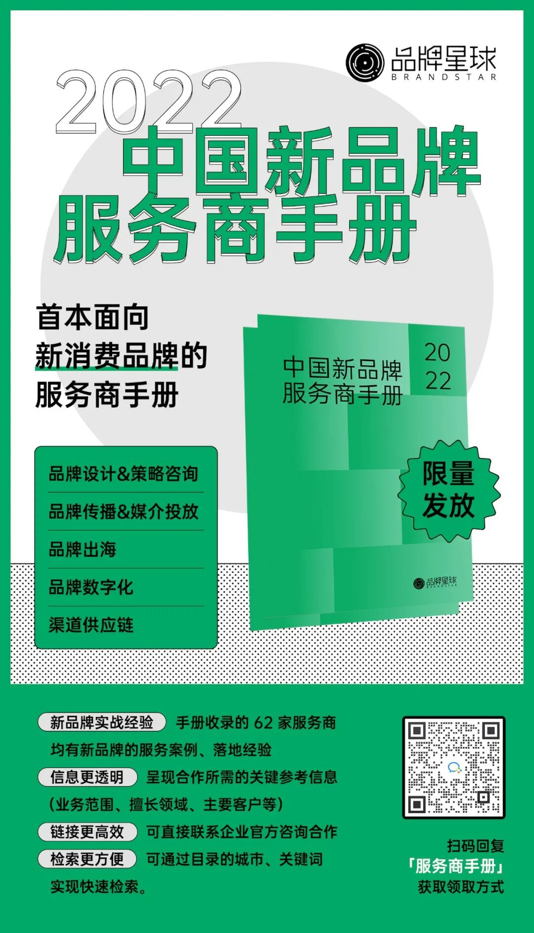 因此,我们决定要做《2022 中国新品牌服务商手册》,目的是为了拉平新品牌和服务商之间的信息差,帮助实现更高效、更优质的资源链接、促成合作,并准备每一年都持续做下去。