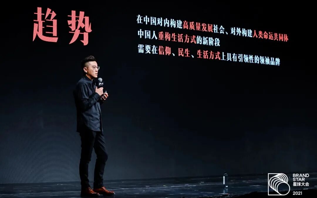 今天下雨,现在是下午的两三点钟,朋友们都是容易犯困的时间。我觉得今天舞台上缺一些东西,缺一些音乐和舞蹈。和大家分享一条新出来的短片,叫「放焰火」,希望给大家提提神,有没有稍微兴奋一点。熟悉我的朋友都知道,我在文案里,比较喜欢讲大词,动辄就是时代、宇宙、全球化,包括今天带来的分享「品牌公众角色的构建与实践」。当时有个朋友说这个题目像一个论文,确实我是比较喜欢大词。今天站在这里很奇妙,我差不多从业 20 年,这 20 年里我见识过太多的楼起楼塌。我也见过了很多小而美的品牌。他们做了很多令人诧异、惊喜的事情,但是最后没有坚持下来,留在了上一个世纪。包括我们自己做公司,小而美是活不下去的,如何保持广度和锐度,如何在公众社会里释放更多的价值,服务更多的人这是很难得的勇气。很多人说取舍,小而美是取舍,取舍意味着智慧,但对我来说大而美才是兼得,兼得才代表着勇气。品牌公共角色这个概念,最早出现是七八年前,那时候我已经在服务各个行业的头部品牌,500 亿的,1000 亿这样量级的品牌。那时候和品牌沟通就是为了帮助他们代际更迭,以及年轻消费者的崛起和消费决策的演变。前两年我们开始做年轻的互联网平台,比如 B站,2021 年又做了一个蕉内,帮这些年轻品牌构建自己的公共角色,以及确定角色之后如何言行一致。首先还是要看一看中国这几年,可能未来十年会面临什么样的趋势,我简单做了一个总结——在中国对内构建高质量发展社会,对外构建人类命运共同体。中国人重构生活方式的新阶段,是需要在信仰、民生、生活方式上具有引领的领袖品牌。这听起来又是一个大词,但领袖品牌并不意味着绝对的规模、体量、实力要达到非常庞大。领袖往往意味着我和你分享同样价值观,同样主张,我们分享同样的生活方式,但是我的意见、想法,我给你提供的价值就是引领性的。这个层面可以称之为是一位优质的精神层面领袖。简单怎么理解呢?一方面来看,高质量发展是中国在国策提出来的概念,这个概念不难理解,它讲的是获得感,这是我自己总结出来的。如何让民众,让所有人在自己的生活里获得更强的获得感,获得感不是那种宏大的,不是对于未来远景宏大的想法。它是微小的,小颗粒度的,带来一种愉悦感和获得感。另外一点关于人类命运共同体,这是一个非常有意思的概念,会牵扯到非常多的命题,包括全球化的概念。我相信和而不同。中国崛起过程中肯定不是退而求其次,而是要把传统和美好的东西分享给全世界。所以我们应该为我们产生好的中国本土品牌而感到自豪,但不要做窝里横的品牌,而是真正的优质品牌。它确实植根于中国市场,但是未来向全球去分享品质、理念、背后的生活方式,并能够融入到全球语境。中国文化怎么从传统化到现代化,从小众到大众,这些东西都是值得我们去研究的。这也意味着对新一代品牌会提出更高的要求。中国人重构生活方式是一个很有趣的课题,中国人的生活方式确实和欧美、日本不一样,不一样在哪里?因为我们曾经经历的断层太多,每一次的社会调整和进化都会带来生活方式的断层。我发现一个问题,70、80 两代父母没有办法教我们怎么生活,反过来是我们教他们,妈妈,你应该用支付宝去付钱、不要相信朋友圈的谣言、在疫情期间你应该戴口罩。我们点点滴滴在反哺他们,我们有更好的知识结构和信息渠道,把我们对生活的经验和理解反哺给我们的父母。同时,我们的孩子,我们孩子的孩子,他们未来生活方式其实是由 70后、80后、90后开始决定的,吃什么、穿什么、用什么,上一代对下一代的影响还是非常强大的。所以我们会决定未来几代人的生活方式,生活方式并没有那么奇怪,它其实就是人和资源和物质之间相处的关系。现在刚好处在一个非常特殊的时期,中国社会又从量变到质变的时期,这个特殊带给我们很大的红利和机会,在民生、生活方式等层面,中国需要大量的品牌来参与整个生活方式的共建。这些东西不是靠政府和精英文化、公知、老师、父母完成的,而是需要极大程度地调动社会资源,商业的力量和品牌的力量共同完成这代人的生活方式。所以在这样的情况下,中国的品牌又是在内循环,在高效发展的大背景下,确实是塑造品牌最好的时候。今天大会整个主题就是重塑品牌,各位也提到品牌不同领域的专业见解。我们谈一下我们对品牌的看法,这是一段名词解释,这代表我过去 20 年的探索,我们认为品牌是为消费者提供产品、服务,参与社会活动的人格化主体。品牌管理就是管理消费者与公众的认知、印象、评价,使消费者在公众,在自身社会活动中把品牌列为独一无二、不可替代的角色。品牌可谓是创始人与核心管理团队集体精神信念的人格化。它是一个核心管理团队的集体,什么样的人就会做出什么样的品牌,大部分我们喜欢的品牌个人化都非常明显,所以品牌是一个人格。分享一段话,是一位人大副校长写的,他是品牌传播方面的专家,他说品牌是所有社会关系的总和,以对话为手段,短期目标是求同,长期目标是共同体。就是说我们放在一个公共关系的角度看品牌,我们把品牌换成人,人是所有社会关系的总和。我们如何把陌生人变成熟人,把熟人变成朋友,把朋友变成死党,死党变成信徒,其实就是在这个环节中。所谓的对话是一个广泛的概念,可