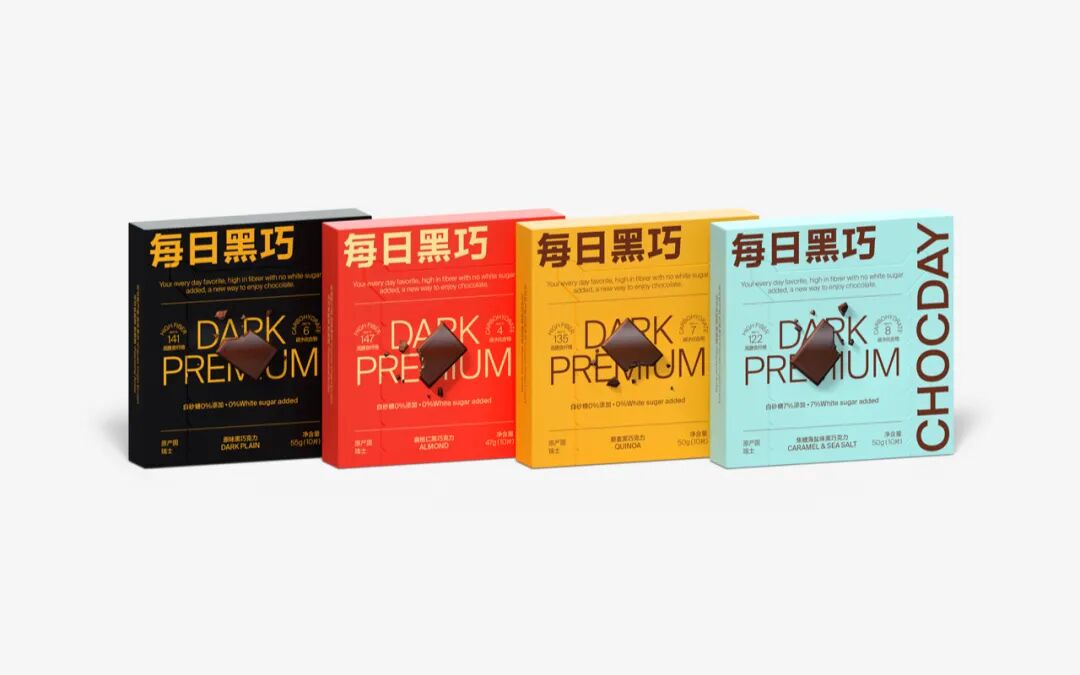 我们的要求第一是「每日黑巧」的中文名要足够大,我希望让大家第一眼就看见,但是不能土。我们想表达中国品牌,就要用汉字。第二,包装不能长的像日本和欧美品牌,但要国际化。我们的产品定位是每一天(Every Day),所以把信息简单、诚实地罗列在包装上,这就是我们当时和设计师沟通的细节。