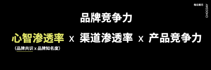 品牌竞争力 = 心智渗透率×渠道渗透率×产品竞争力。