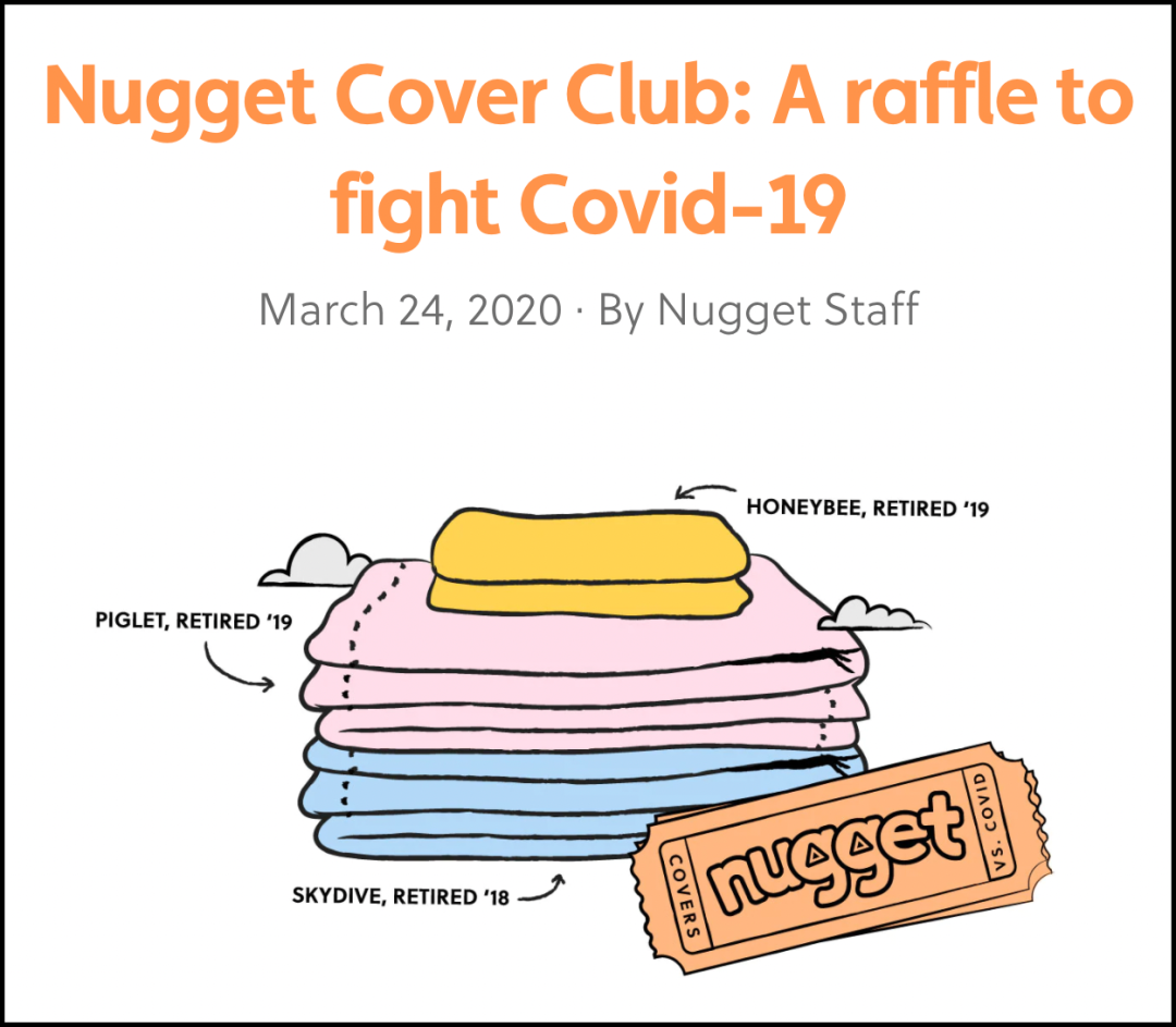 Nugget 很快想出了一个兼具创意与善意的解决方案。4 天后,Nugget 推出了「Nugget Cover Club」慈善抽奖活动:以抽奖券的形式销售仓库里剩余的旧款沙发布套,所得收入全数捐赠给当地解决儿童饥饿问题的公益组织 No Kid Hungry。