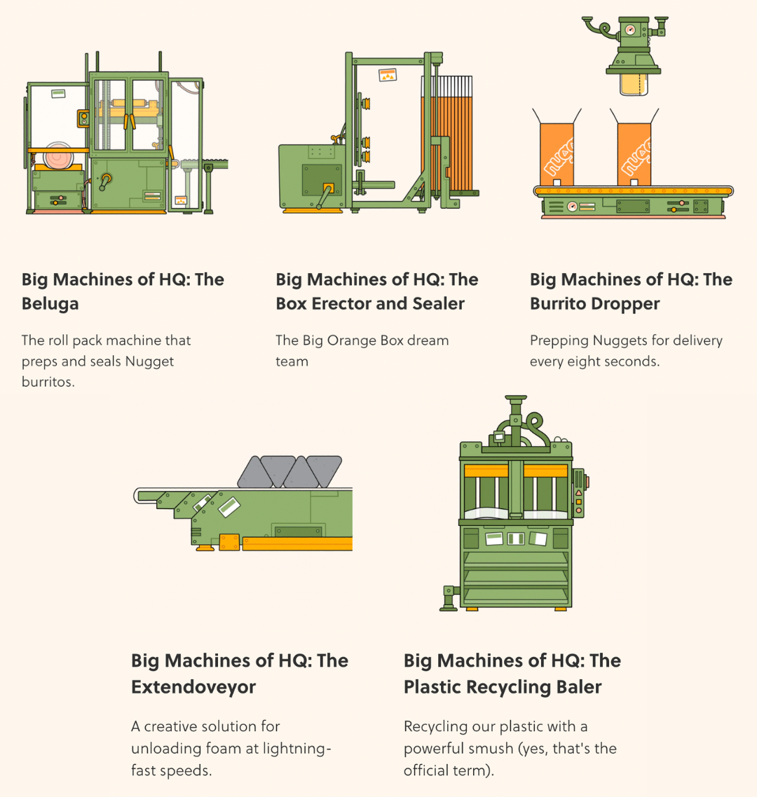 ● Nugget 的生产机器插画,品牌星球整理