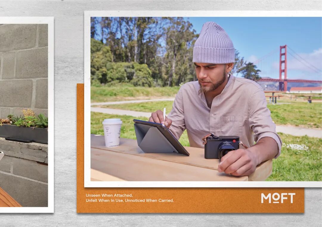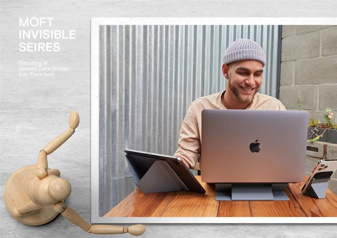 随着 MOFT 三到四年的发展,现在我们的用户也不只局限于数字游民。除了数码产品的爱好者、自由职业者、移动办公差旅人群,也有很多创意工作人群如设计师、插画师、独立艺术家、内容博主,以及一线城市的白领、金融行业从业者、大学生等等。小航海:MOFT 针对这样一群人,推出的第一款产品是怎样的?有哪些设计亮点?MOFT:MOFT 的第一款产品「隐形笔记本电脑支架」可以用「充满惊喜地横空出世」来形容,2019 年 1 月在 Kickstarter 众筹平台获得了 92 万美金和 32000 名「backers 支持者」的成绩。这个支持者数量排进了 Kickstarter 历史几十万个项目里面的 Top 50 的名单里面,在科技向产品交流社区 Product Hunt 上线当日也获得了超过 1000 的投票数,还获得了 TechCrunch 等科技媒体、YouTube 头部评测 KOL「Unbox Therapy」的报道。在产品 0-1 的过程中,我们的关键决策是把解决痛点放在首位,以及坚持原创精神,不会去做市场上重复的产品定义。从用户需求,在已有品类里面去重新定义一个新品类,这个是我们一直坚持的策略。例如笔记本电脑支架是一个非常成熟的品类,市场上的成熟产品也很多,例如不锈钢、塑料、木质的材质和结构。MOFT 的笔记本电脑支架是在这个已有的大品类里面,原创了「隐形电脑支架」的品类,重新定义了一个新品类。这款支架通过独有的「origami 折纸式」巧思设计,解决了主流电脑支架面临的无法携带、笨重、无法和笔记本电脑合为一体的痛点,同时又保留了传统电脑支架的支撑角度调节、稳定性等特点。● MOFT 笔记本电脑支架
