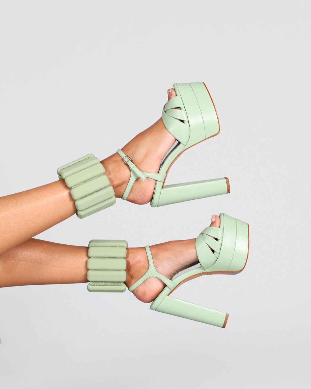 硬核的重量、单调的颜色、固定的使用场景,这些都是传统健身器材在大家脑海中留下的固有印象。但品牌星球最近发现了一个很有意思的健身器材品牌「Bala」,完全打破了上文提及到的健身器材形象。Bala 推出的产品无论在色彩还是造型上都更丰富,甚至还能和时尚品牌做联名。● Bala 与时尚鞋履品牌「Schutz」的联名靴子和凉鞋(向左滑动查看更多)