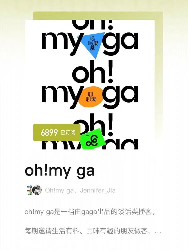 当然,gaga 这个价格段本身并不算贵,「全时段休闲餐饮」的定位也让 gaga 没有门槛,这些都给予了 gaga 一种大众性。目前 gaga 小程序的注册会员数也达到了 250 万。但最核心的这群「精英用户」,无疑对 gaga 的品牌塑造和商业决策,起到了很关键的作用。gaga 的 CMO Jennifer 曾提到一个观点:生活方式品牌的核心在于与「一类人」产生深度且长期的链接,通过他们高频接触的事物为媒介,去输出他们认可并喜爱的生活方式。比如在日本,从经济繁荣期成长起来的「银发族」有着较高的消费能力和意愿,他们非常习惯看书和买书。因此茑屋书店才能以书作为介质,发展到空间、美学、器物等生活方式的延展。在中国,Jennifer 认为这个介质就是「食物」。中国人对于美食的追求以及高频次的消费,让餐饮成为最适合拓展生活方式的原点。当 gaga 已经以「全时段休闲餐饮」的定位吸引并筛选了一批都市品质人群,便开始去将这种消费关系从餐食消费,延伸到生活方式和精神层级的内容消费。gaga 在 2022 年做了非常精彩的内容输出,除了《gaga-ism》杂志书之外,Jennifer 还推出了 gaga 的播客节目《oh!my ga》,邀请了各行各业「好品味」的朋友来做嘉宾。目前已经邀请的就有 ZUCZUG 品牌形象经理、V.O 餐厅的葡萄酒侍酒师、GQ 资深生活方式编辑、FLOW冥想的内容负责人、一坐一忘主理人、ABCD 联合创始人 Nod Young 等等嘉宾。● gaga 播客和邀约的嘉宾(左滑可看更多)
