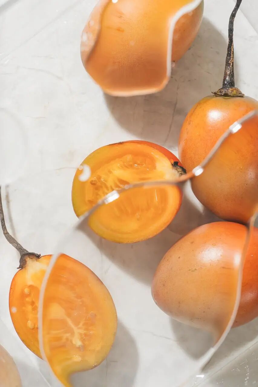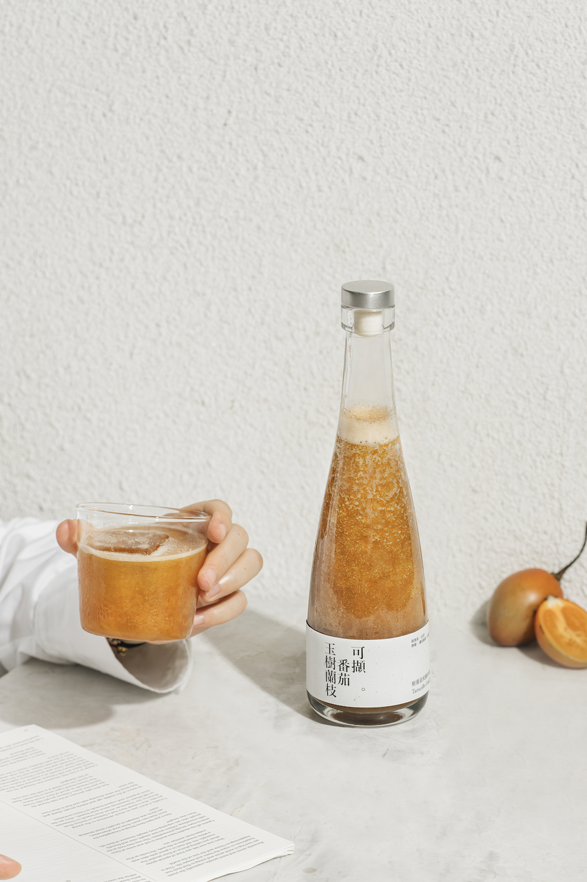如果单以产品数量来看,gaga Cafe 当前菜单中的饮品(包括果茶、果蔬汁、咖啡、奶茶等)数量达到 35 个 SKU,甚至超过餐品的 30 种选择。 再观察门店中后厨的空间,负责饮品的「水吧」和负责餐品的「餐吧」也几乎是一样大的。据 gaga 表示,现在营收比例的反转,并不代表茶饮的受欢迎度减弱了。如果看出单量,饮品和过去仍是一样的,只是餐品的客单价较高、增长更快,因此在营收数字上显得差距较大。但在下午茶时段,茶饮仍然是 gaga 的主力产品。gaga 水吧的负责人 Andy 也是 gaga 的联合创始人,当和他聊到 gaga 茶饮产品的研发思路,他提到很有意思的一点:gaga 的果茶产品在调味上和现在的连锁茶饮品牌有所不同,并不会去做料的叠加,而是注重香气和风味的平衡。gaga 的所有茶饮会调用到「嗅觉」,比如在水果组合里,特意找一款香气高扬的果子搭配进去。因此鲜果茶不只是好喝,更重要的是「香味」提供了很立体的饮用体验。gaga 从不使用任何香精来构成香气,而是遵从自然主义,利用广深地区水果和茶的天然优势来进行创作。gaga 门店几乎一两个月就会有当季新饮品上市,其创新思路是,在大家熟悉的、安全的口味中,去调配一味大家不那么熟悉的水果或者茶,来提供打破常规的惊喜。这一味往往调的很微妙,不会过于让人不安,但又能让客人感受到有些不同,能够记住。比如在 2022 年 8 月,gaga 上新了一款「落日树番茄」,这是市场上第一次用「树番茄」来做饮品。gaga 将树番茄结合山竹和柠檬,汤底则是兰花绿茶,带来了既熟悉又陌生的口感,大受欢迎。● gaga 的落日树番茄新品