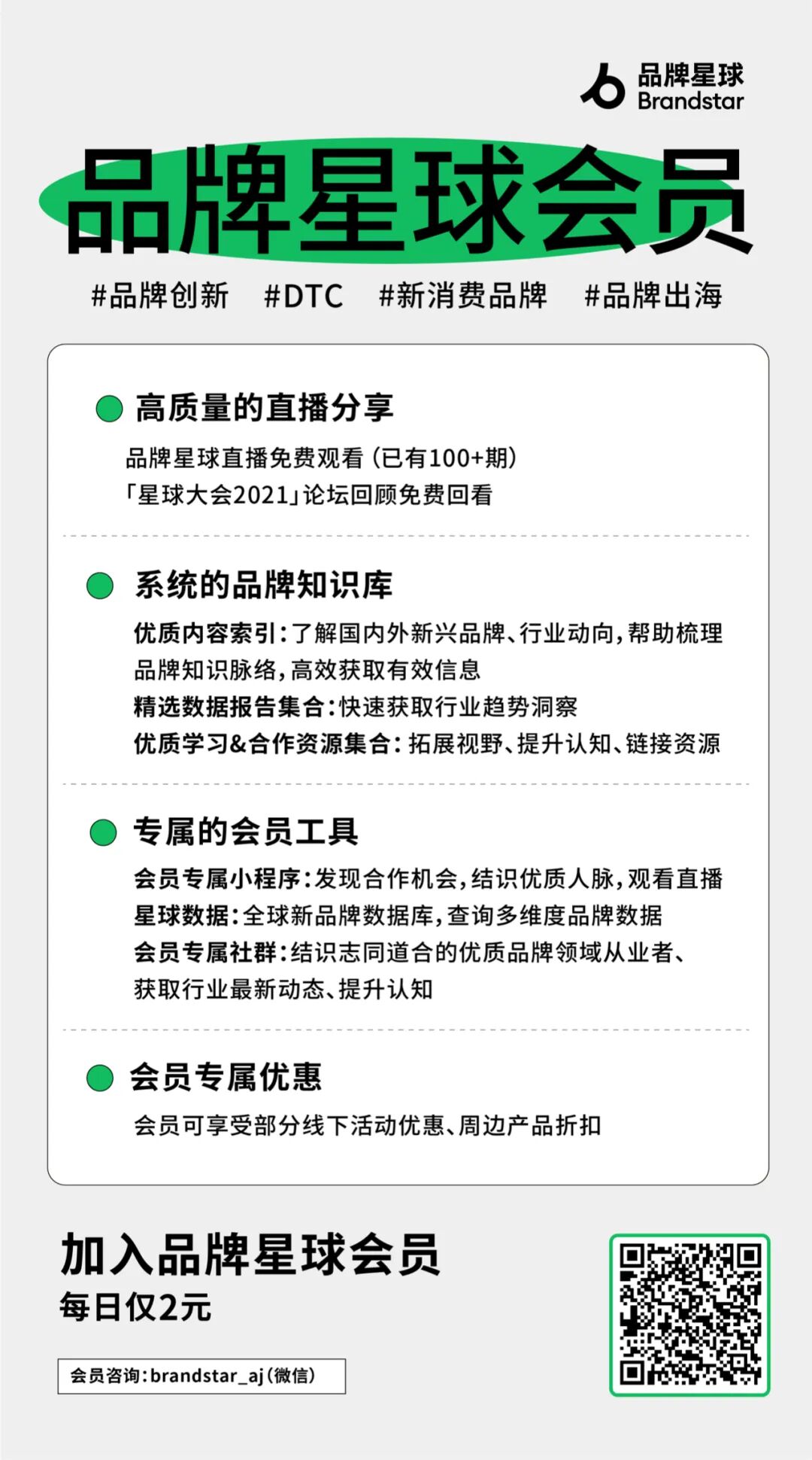 品牌星球会员社群是聚焦新消费、DTC 与品牌创新的社群,覆盖国内的新消费品牌、海外 DTC 品牌和中国品牌出海。群内主要为品牌创始人、投资人、媒体和营销领域从业者。