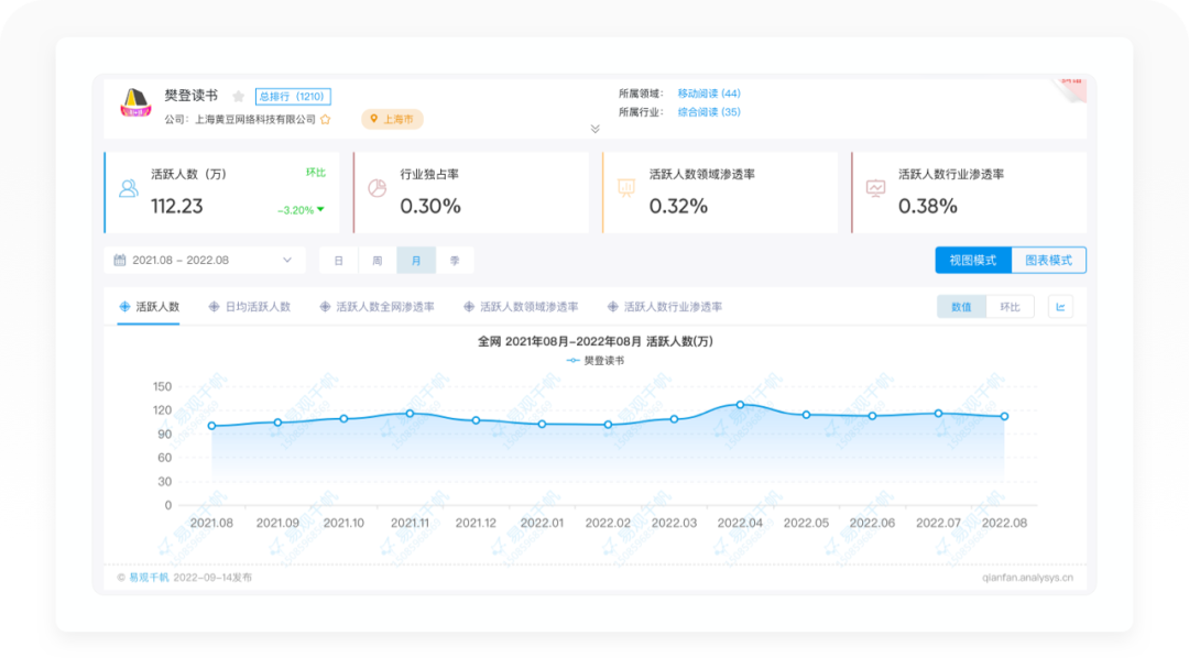 根据易观千帆数据显示,截止到2022年7月,樊登读书月活跃用户人数115.94万,注册用户超过6000万,年营收早在2021年就超过10亿。明年即将年满十岁的樊登读书,目前处于产品生命周期的成熟期,当下聚焦于商业变现和用户增长。