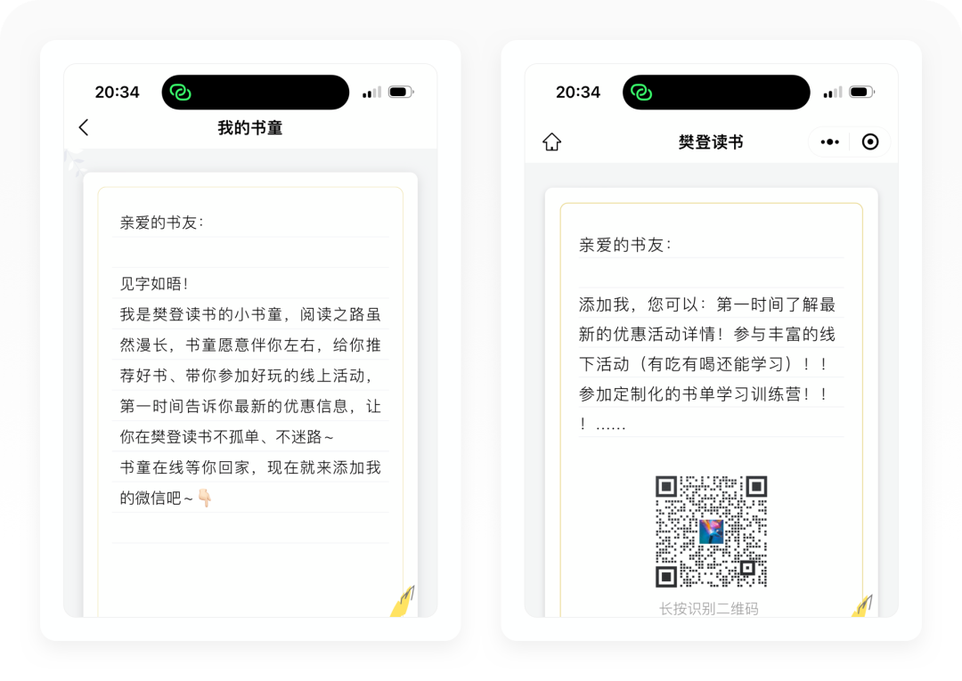 小书童的设计非常巧妙,它并不是一个智能AI客服,而是让用户添加企业微信客服,这其实是把用户留存和销售场景移植到微信上,从而实现用户激活和复购。