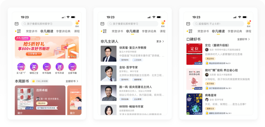 2020年5月,非凡精读馆公测上线,为用户带来更多专家解读书籍;