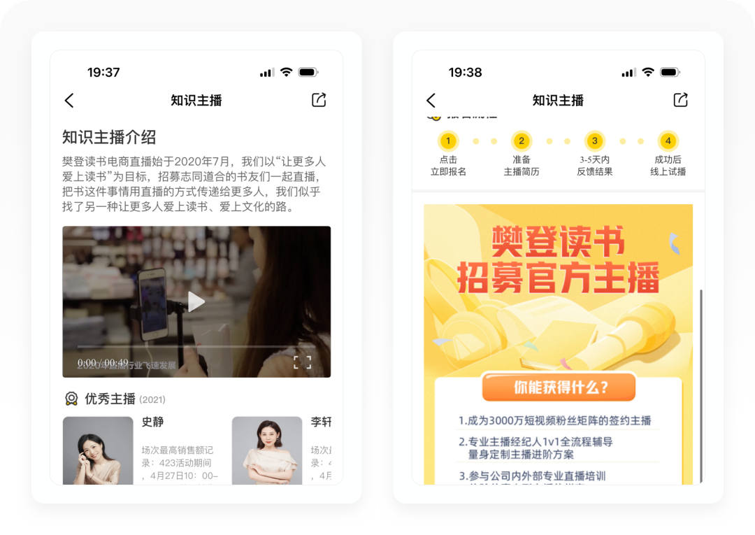 知识主播就是负责樊登读书的电商直播,通过直播带货,实现副业收入。知识主播可以免费报名,分为兼职主播和全职主播。
