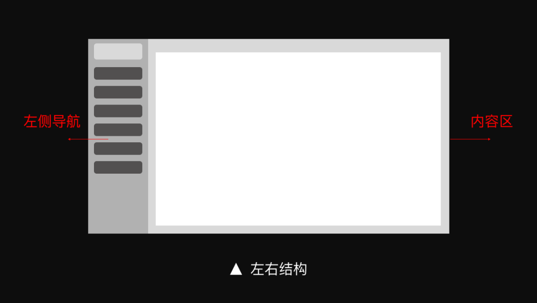 B端产品给人的感觉总是千篇一律的,基本就是图表、表格、详情页,或者业务流程,实际上也大抵如此。毕竟B端产品主要是工具型产品或者管理系统,面向企业用户,解决用户的实际需求,很少去引导用户产生需求。在这种背景下,产品的性能、功能、用户效率就成了第一位的。必要时,甚至会牺牲一定的用户体验优先保证产品功能。所以B端产品系统界面不能为了“看起来新颖”而不同,更要注重用户用起来的体验。从0开始构建新的产品,首先要确定好界面框架。B端界面框架并不复杂,主要包括顶部信息栏、左侧导航和内容区3大部分。通过不同的组合形式,界面框架就形成了3种设计模式。#01 上下结构