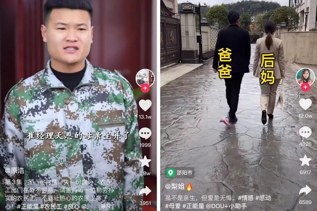 ● 围绕着人情世故展开叙事的正能量剧情,擅长从家长里短、为人处世等层面构造生活化的戏剧性情节,从中凸显正能量内核,以此吸引粉丝关注。比如@梨姐、@原浩、@徐蓉蓉等账号均属于此种模式。